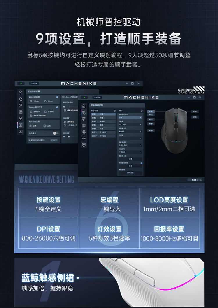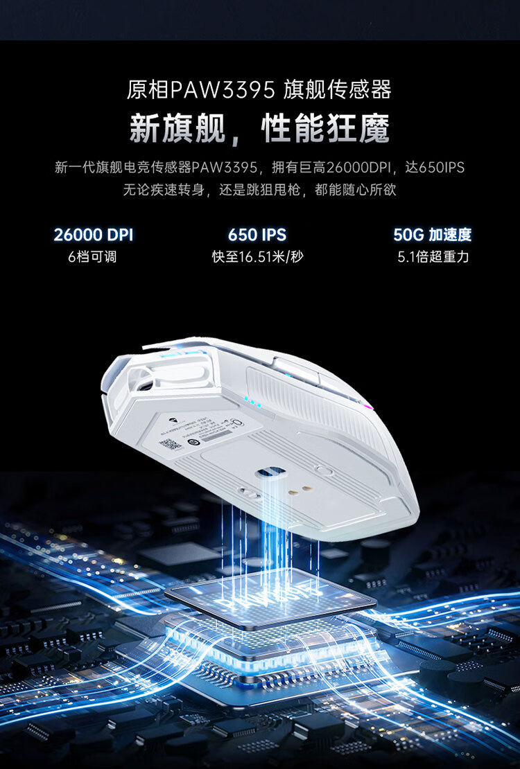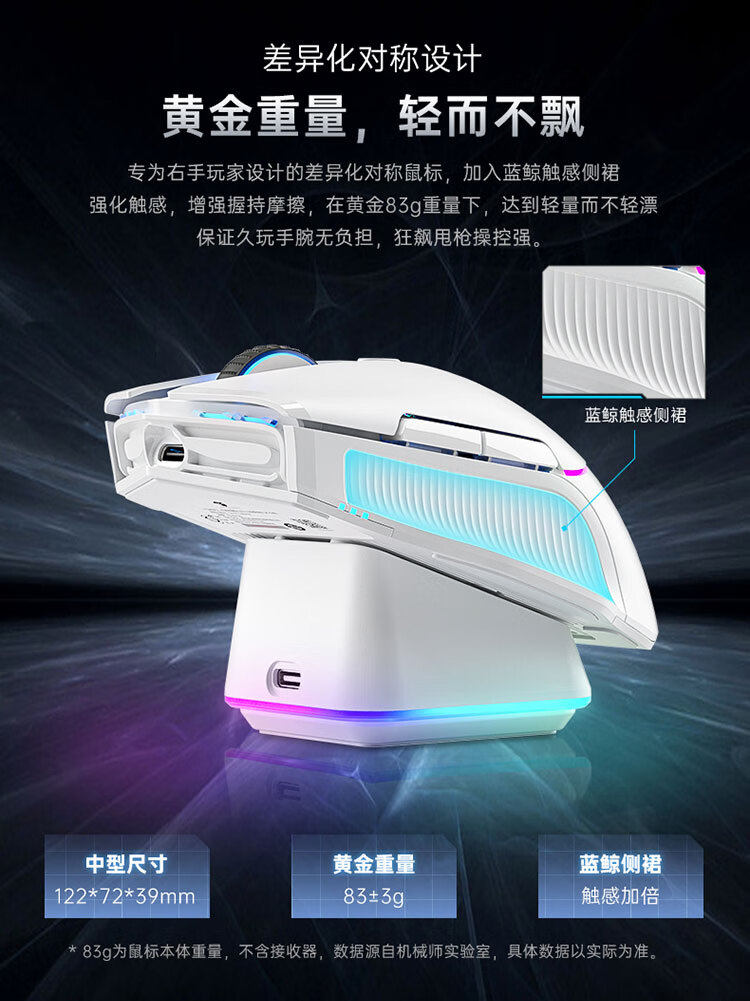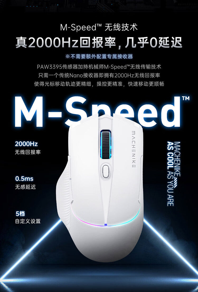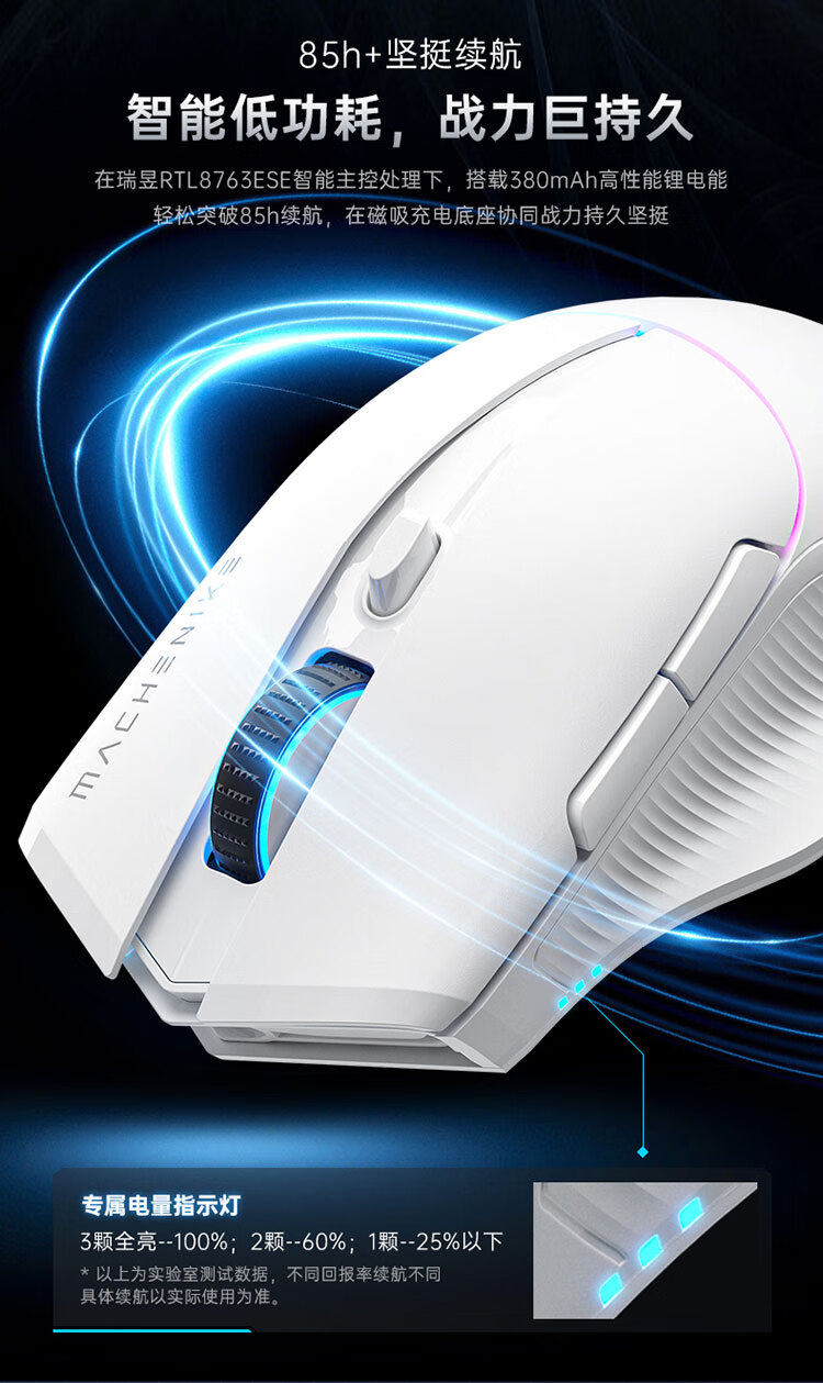 Mechanic L8Pro Three-Mode Gaming Mouse with Charging Dock, 3395 Sensor, Base Included, 8K Polling Rate, Large Hand Size
