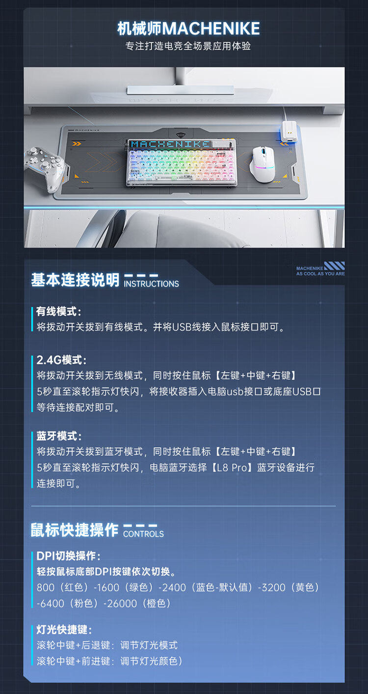 | Connection Method | Bluetooth,2.4g Wireless,Wired |