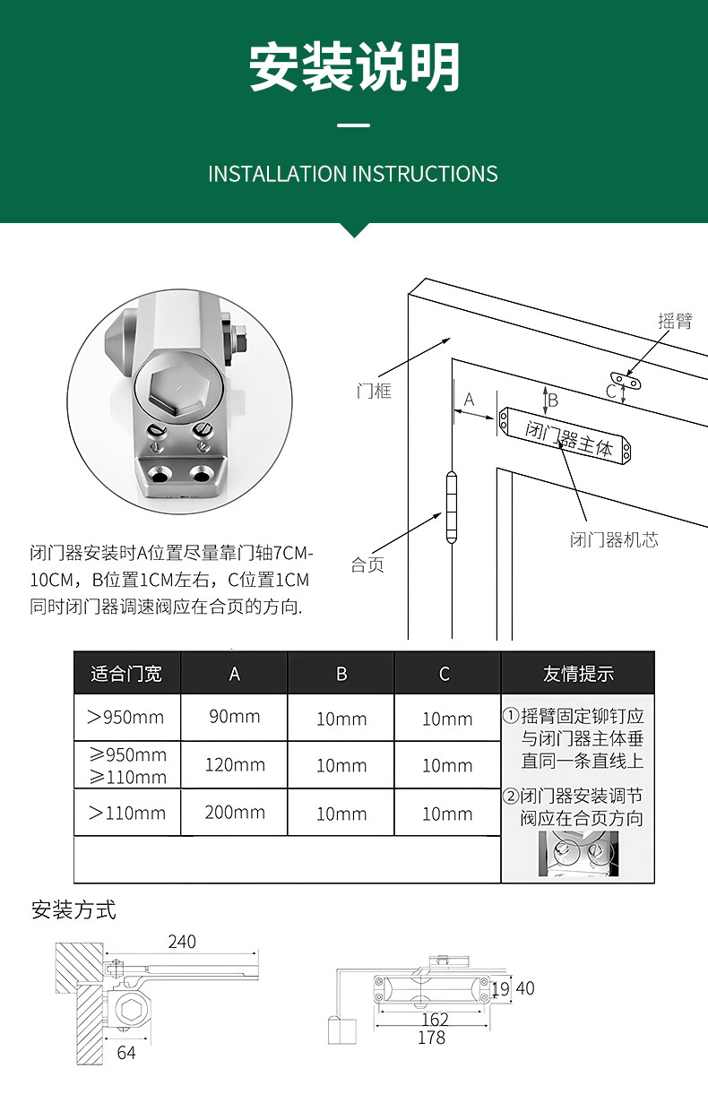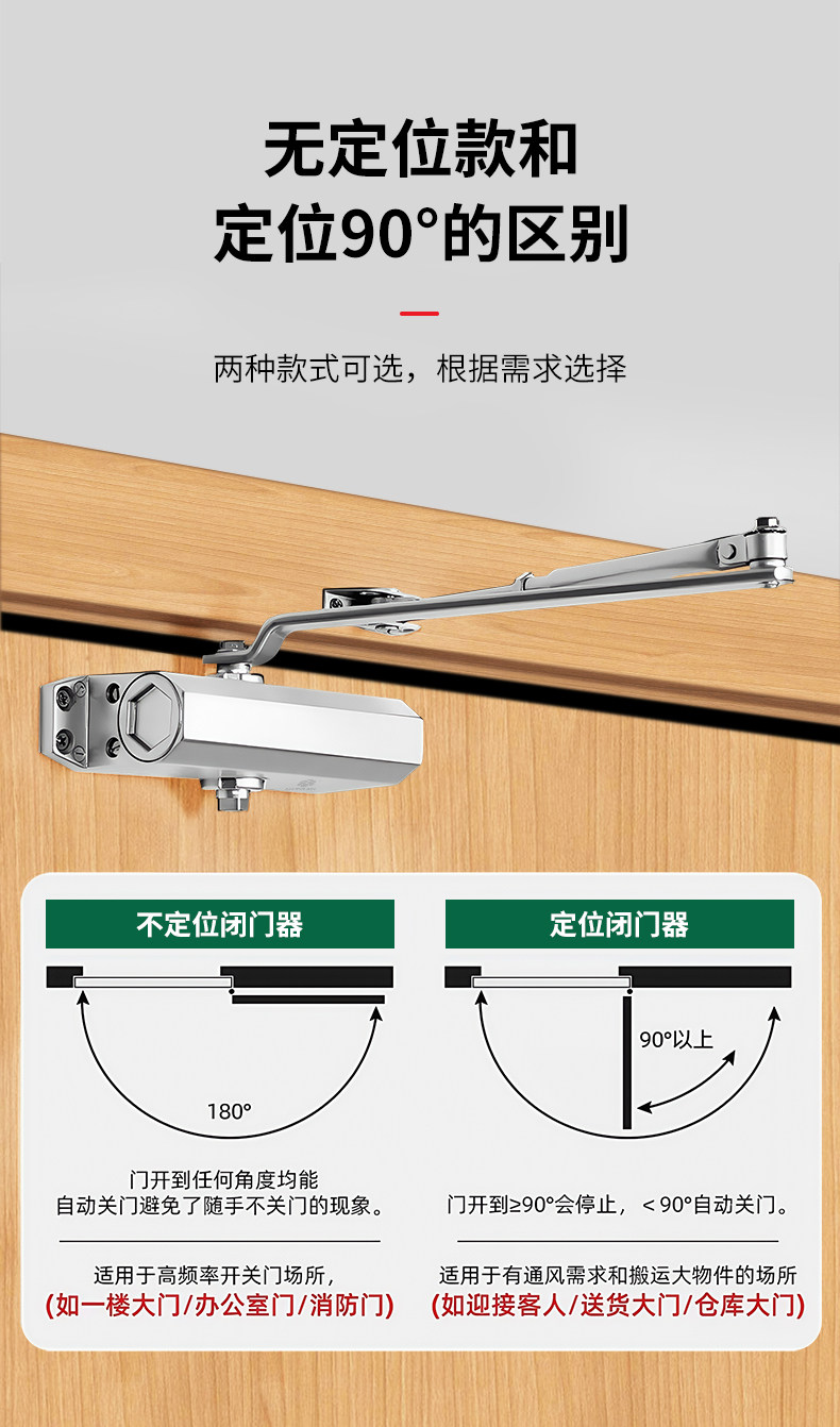 | Color Classification | â Yes âWarranty for Damage/10-Year Warrantyâ ,Small Size,With Positioningâ€Suitable for Door Weight 25~45kg,Small Size,Without Positioning,Medium,With Positioningâ€Suitable for Door Weight 45~65kg,Medium,Without Positioning,Large Size,With Positioningâ€Suitable for Door Weight 65~85kg,Large Size,Without Positioning,Extra Large,With Positioningâ€Suitable for Door Weight 85~120kg,Extra Large,Without Positioning |