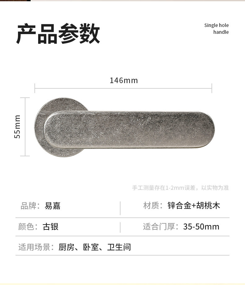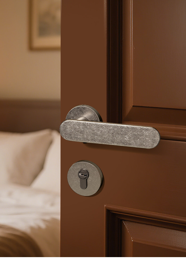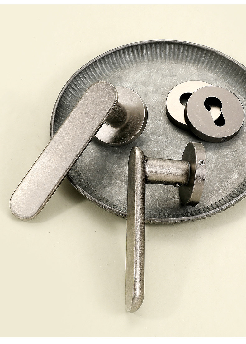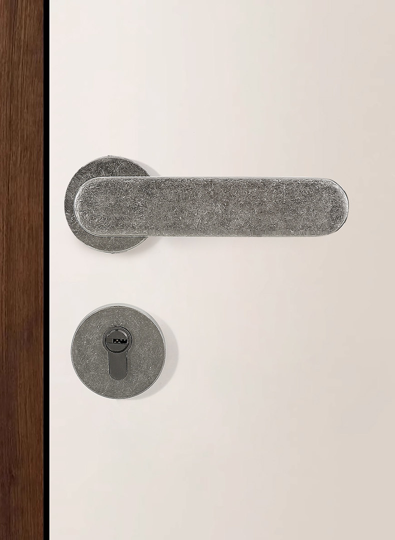 Retro Silver Indoor Door Lock Wabi-Sabi Style Distressed Bedroom Door Bathroom Solid Wood Door Lock Silent Lock Set