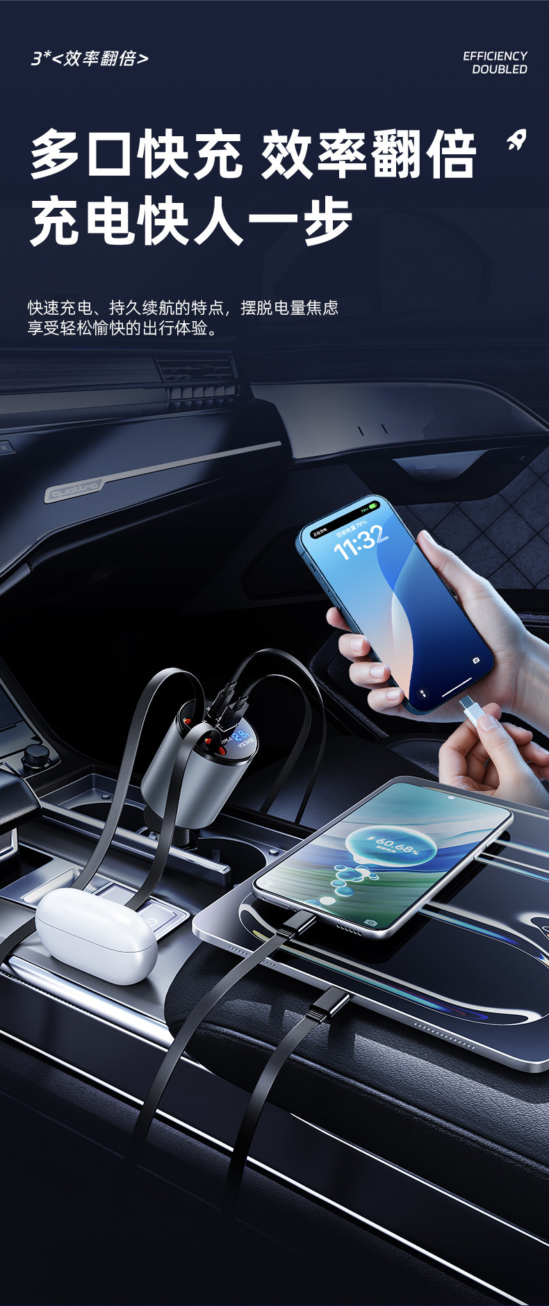 New Car Charger Super Fast Charging Cigarette Lighter Adapter Suitable for Apple 16, Huawei, Xiaomi, Oppo