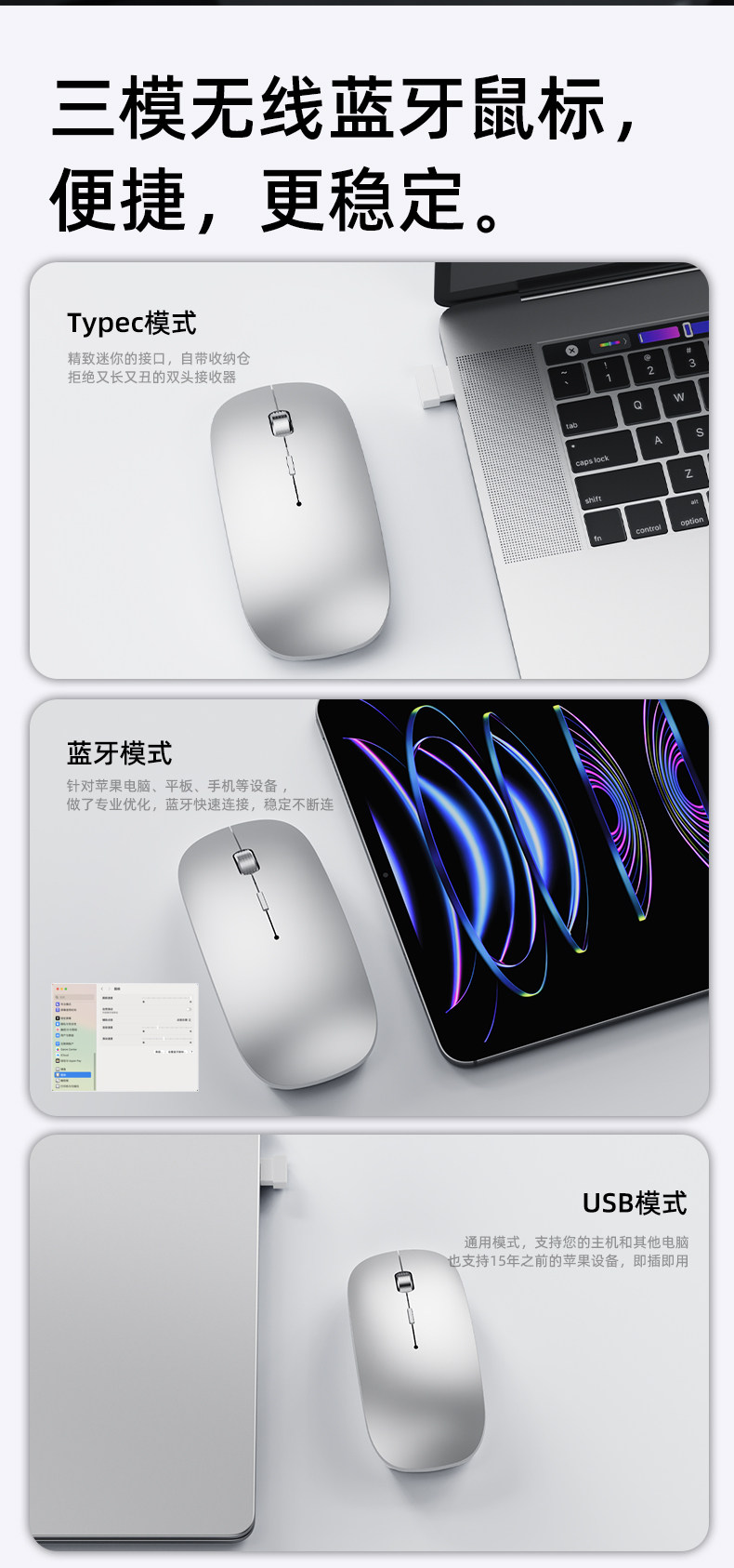| Color Classification | ---Special for Apple Computer Tablets,Excellent Adaptation for MacBook Air Pro or Imac, Mac Mini---,[Apple Silver]Bluetooth+Usb+Typec Interface â² Free Fabric Mouse Pad,[Apple White]Bluetooth+Usb+Typec Interface â² Free Fabric Mouse Pad,[Metallic Gray]Bluetooth+Usb+Typec Interface â² Free Fabric Mouse Pad,[Textured Black]Bluetooth+Usb+Typec Interface â² Free Fabric Mouse Pad,[Rose Gold]Bluetooth+Usb+Typec Interface â² Free Fabric Mouse Pad,---The Following Is a Matching High-End Leather Mouse Pad---,[Apple Silver]Bluetooth+Usb+Typec Interfaceâ²Free Leather Mouse Pad,[Apple White]Bluetooth+Usb+Typec Interfaceâ²Free Leather Mouse Pad,[Metallic Gray]Bluetooth+Usb+Typec Interfaceâ²Free Leather Mouse Pad,[Textured Black]Bluetooth+Usb+Typec Interfaceâ²Free Leather Mouse Pad,[Rose Gold]Bluetooth+Usb+Typec Interfaceâ²Free Leather Mouse Pad |