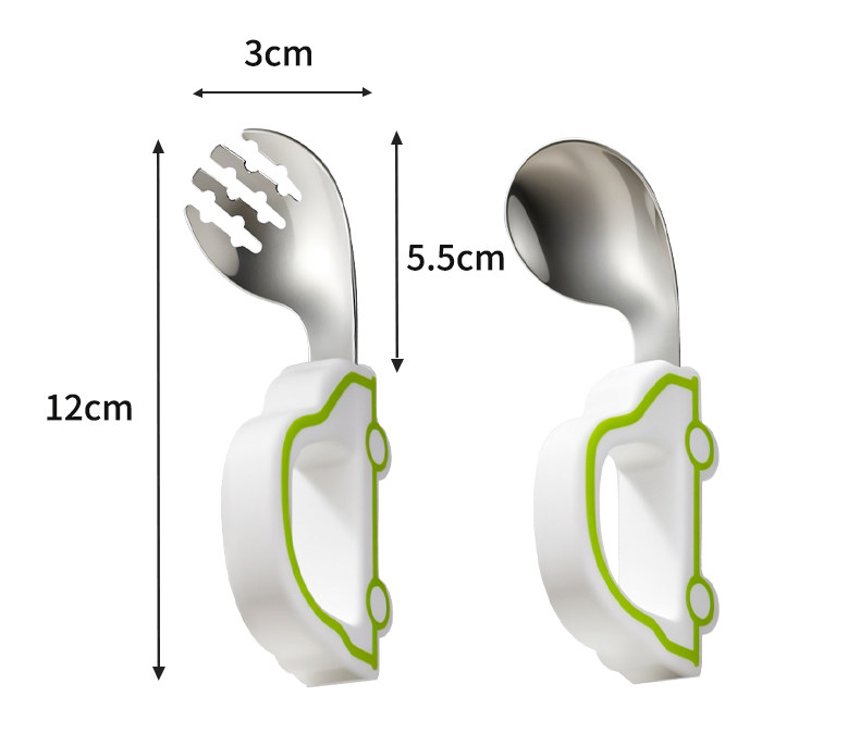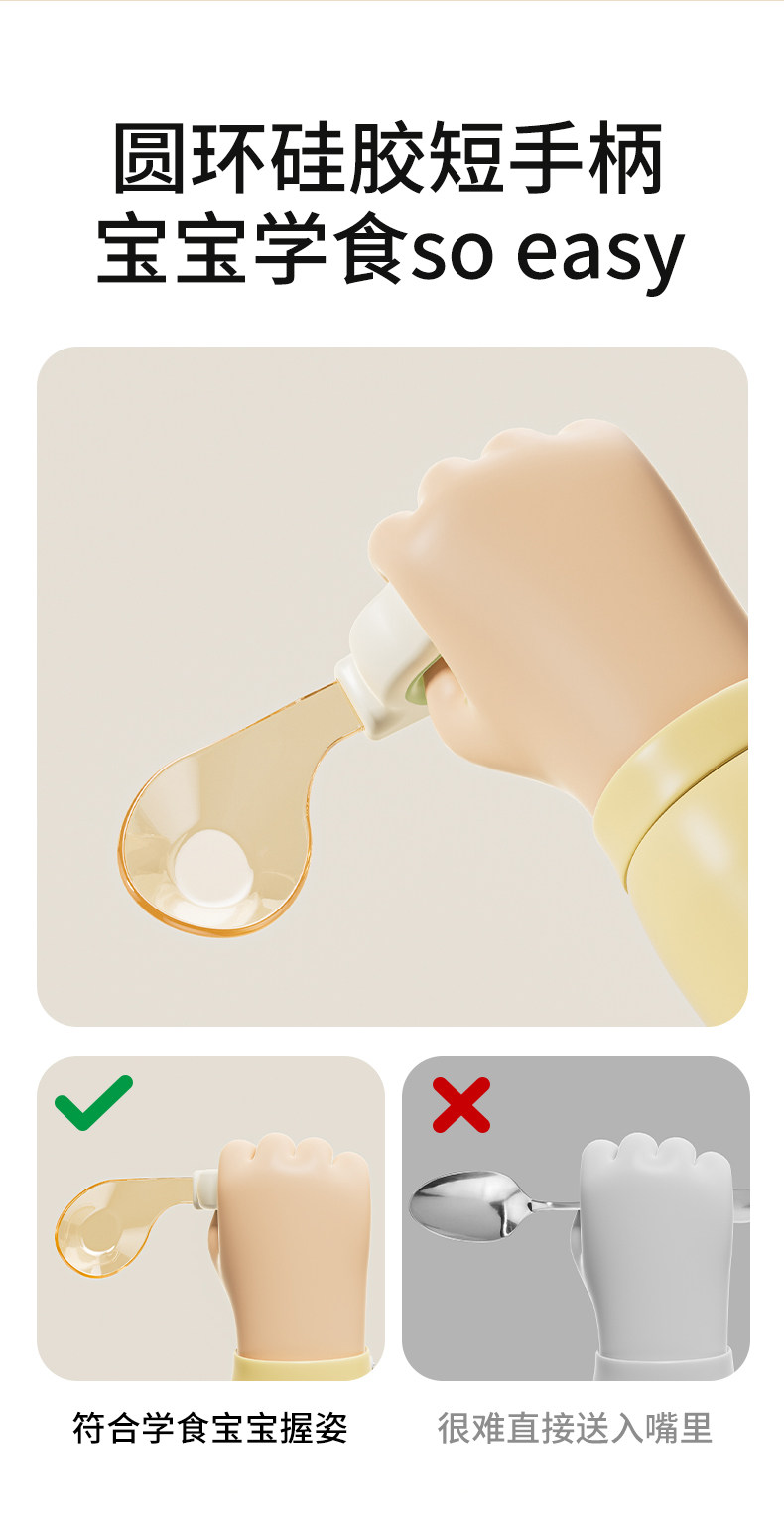 Baby Spoon for Infants Learning to Eat Independently, Short-Handled Silicone Feeding Spoon, Children's Fork and Spoon Set