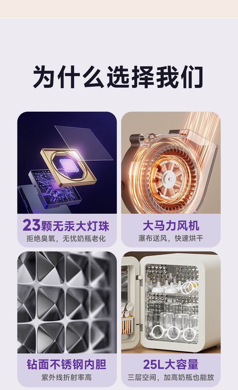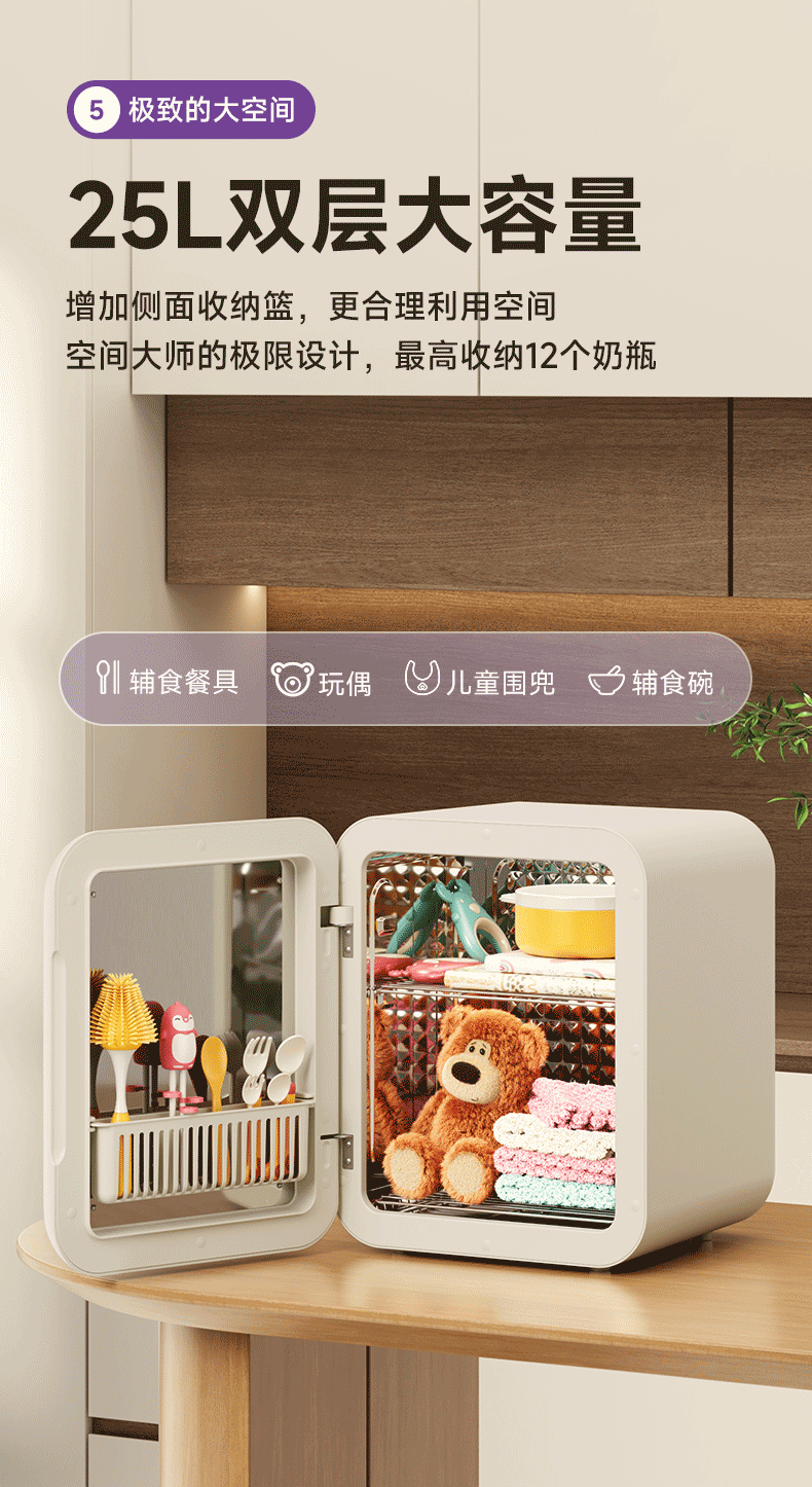 Baby Bottle Sterilizer Cabinet with Ultraviolet Light, Drying and Sterilization Two-In-One Machine, Automatic, Specially Designed for Infants and Babies