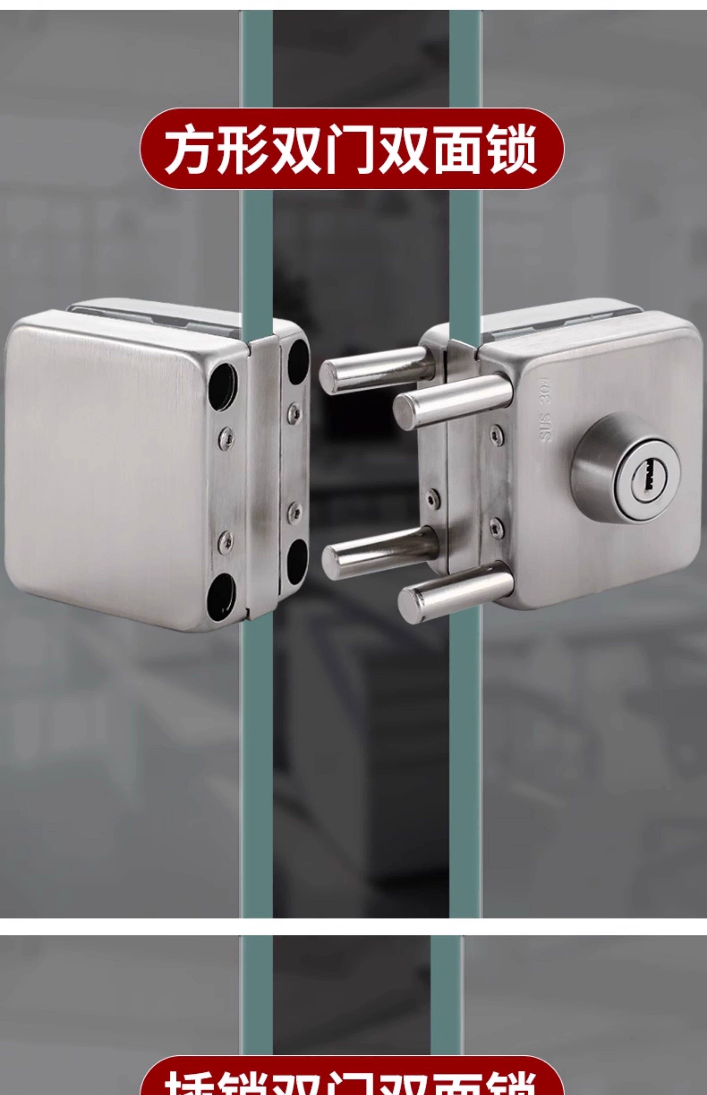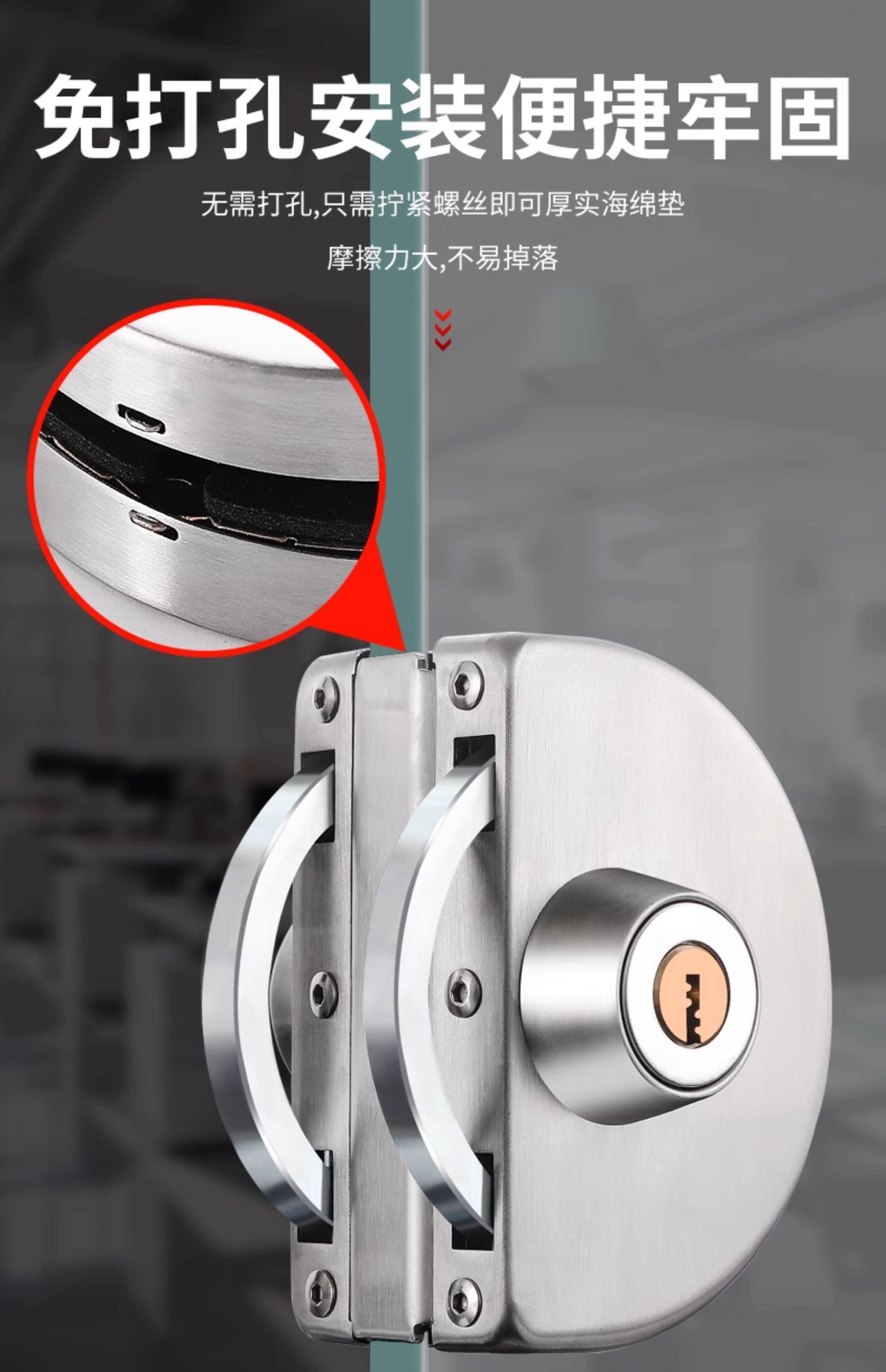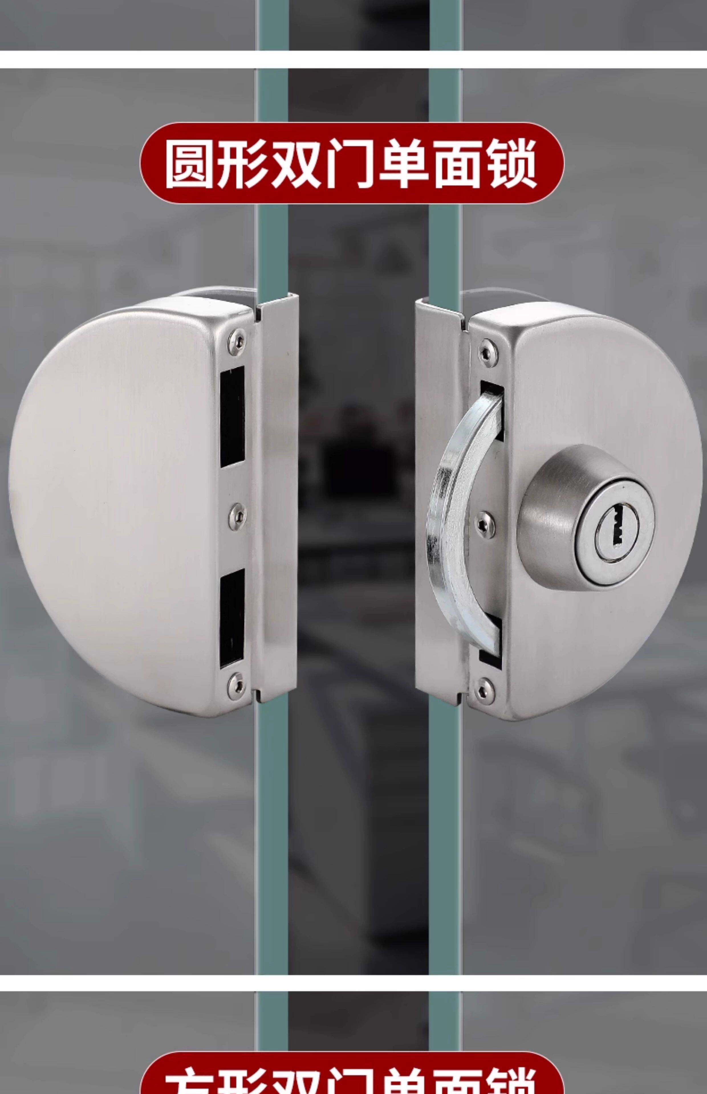 Glass Door Lock Without Drilling, Glass Door Lock for Double Doors and Single Doors, No-Drill Glass Lock, Shop Sliding Double Door Lock