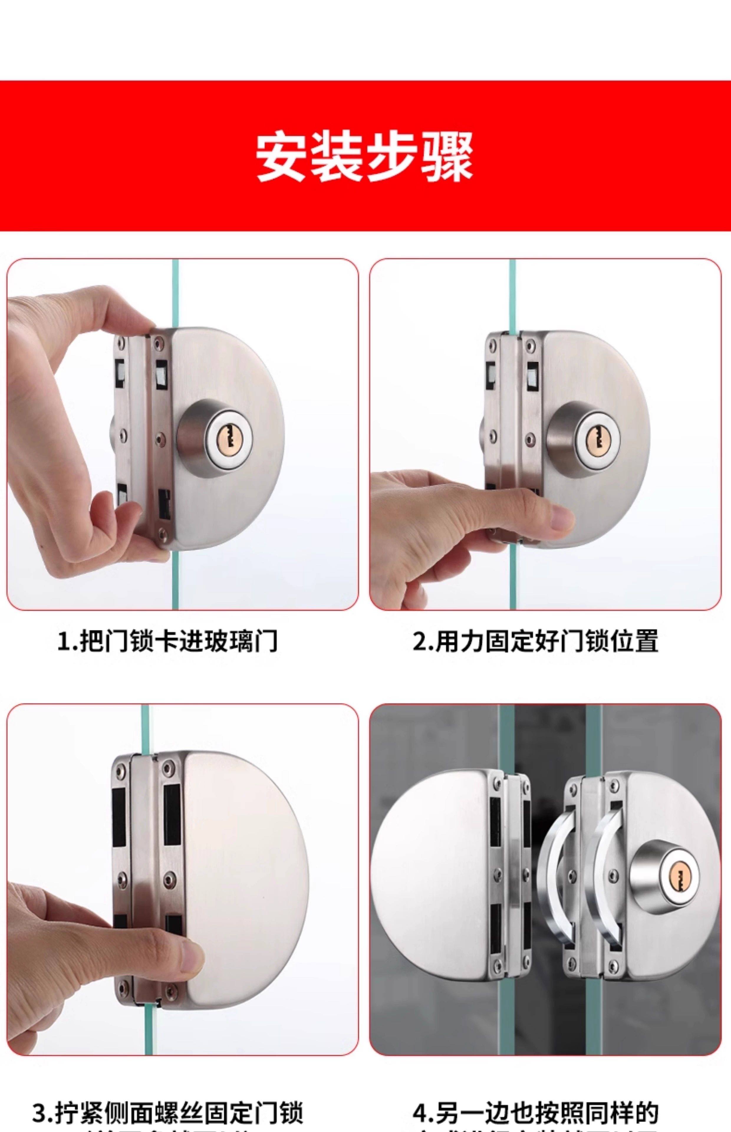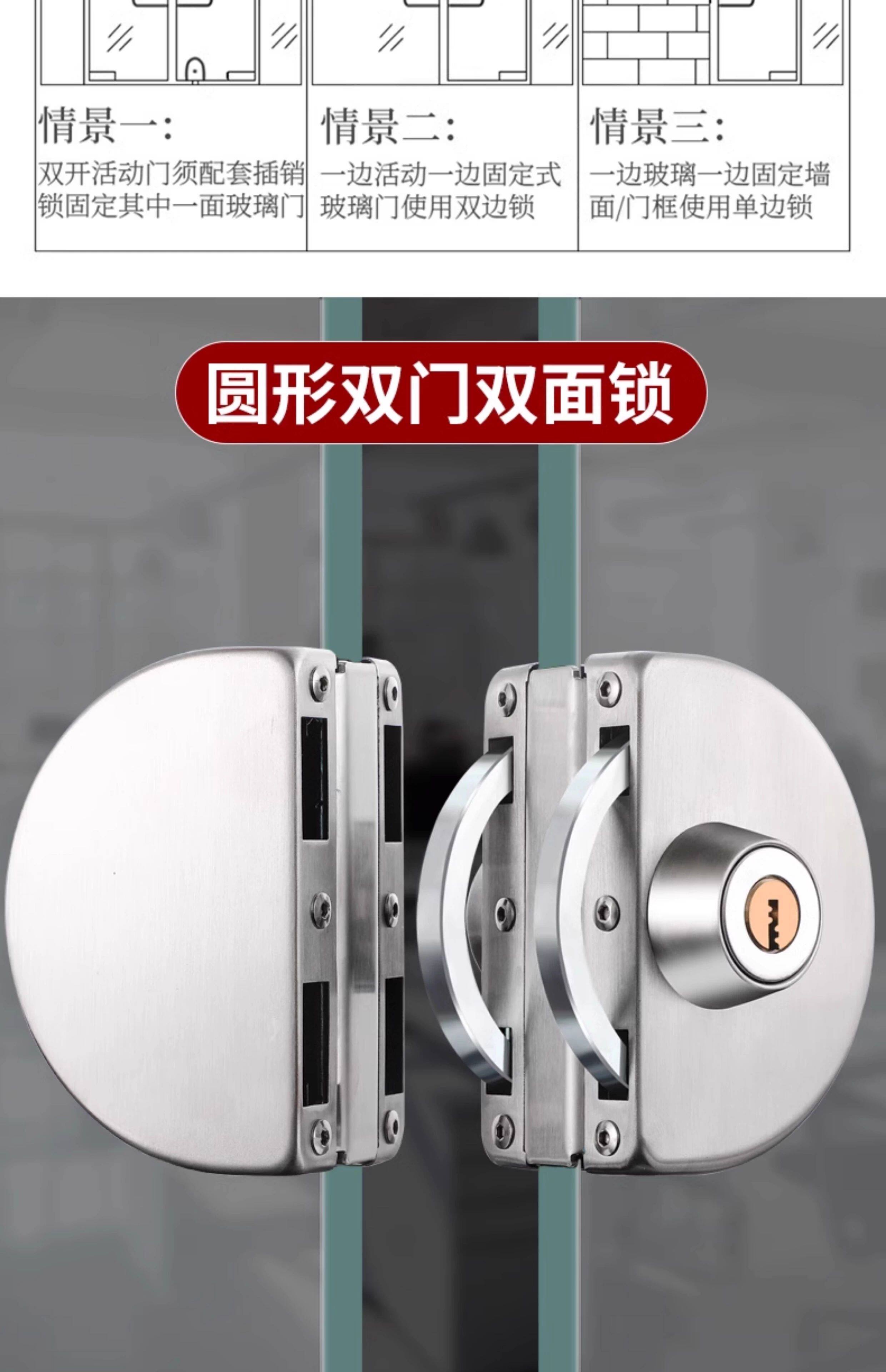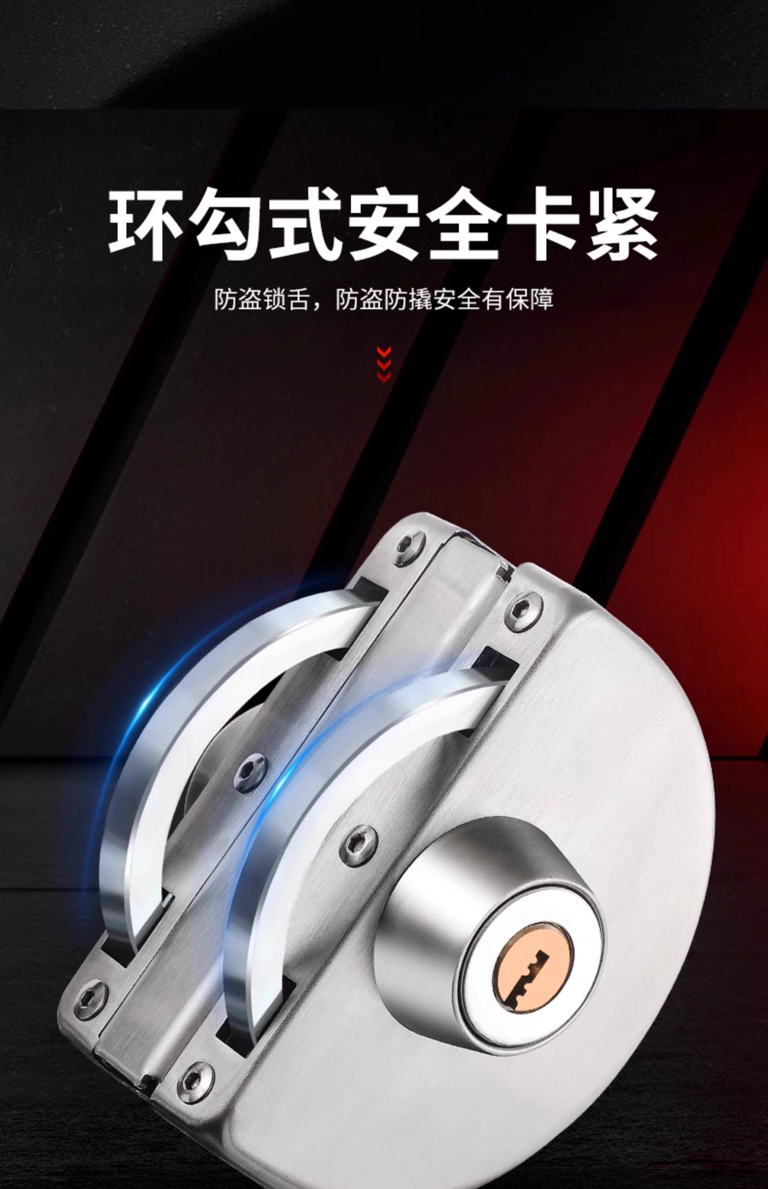Glass Door Lock Without Drilling, Glass Door Lock for Double Doors and Single Doors, No-Drill Glass Lock, Shop Sliding Double Door Lock