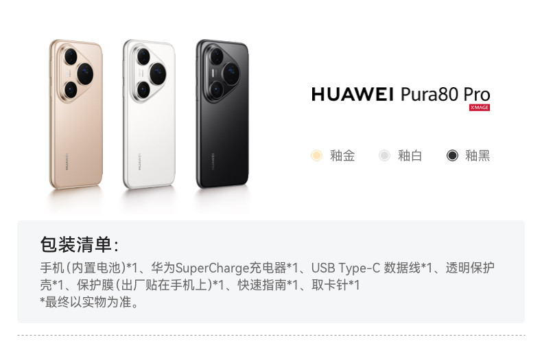 [24-Month Interest-Free + Free Screen Protector] Huawei Pura 80 Pro Mobile Phone Official Flagship Store New Genuine Student Beidou Satellite Hongmeng Smart P80Pro Phone