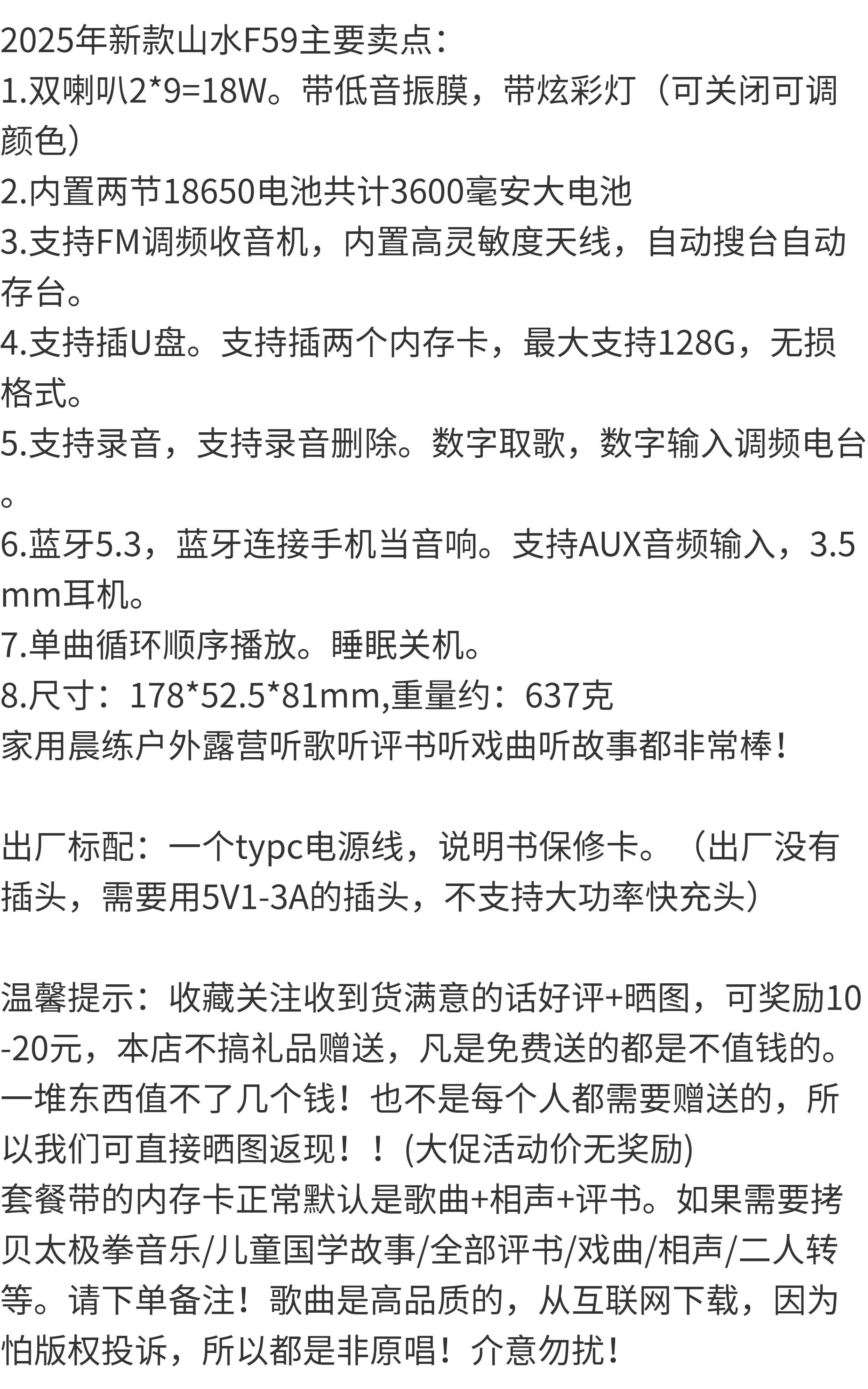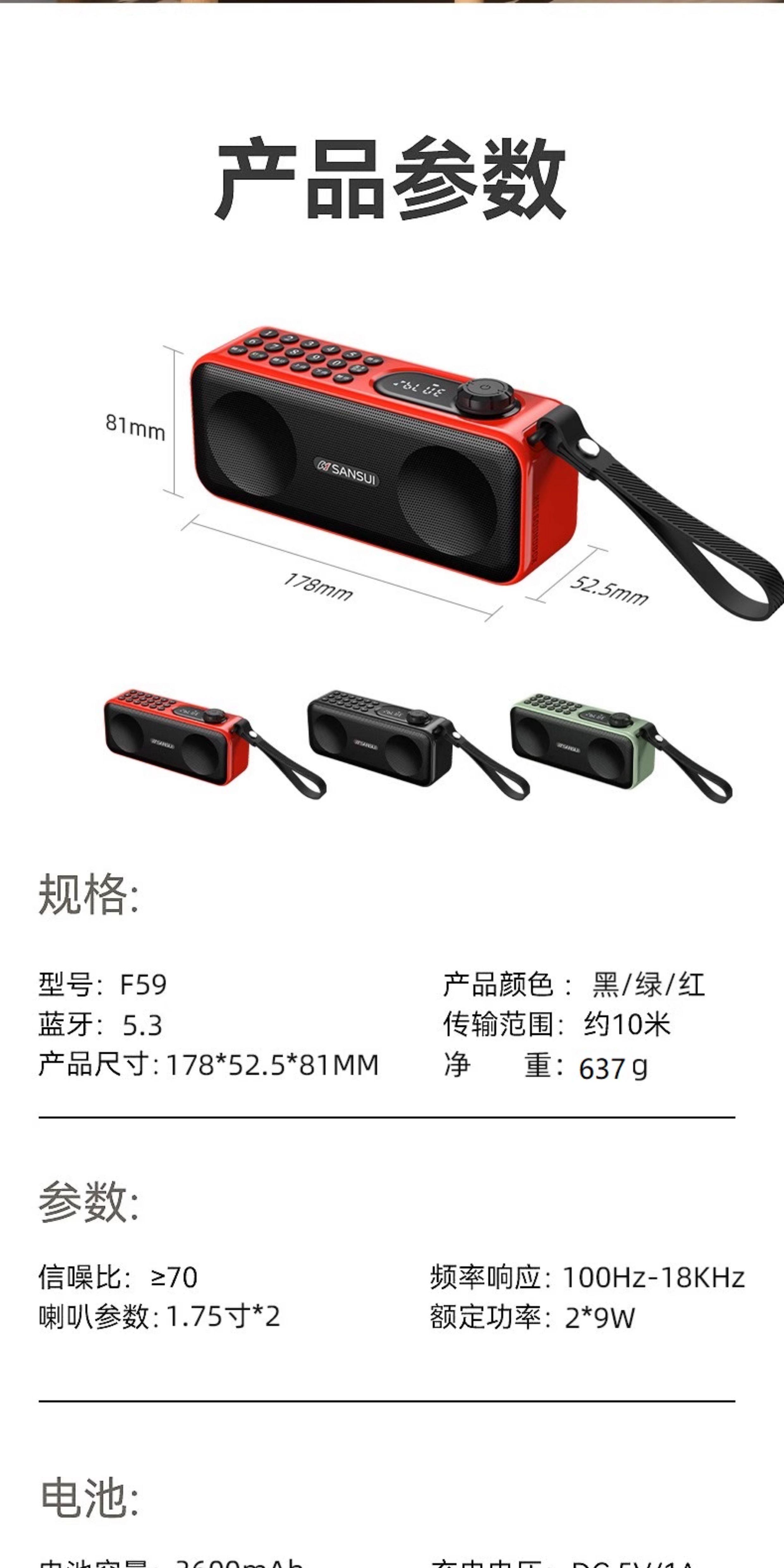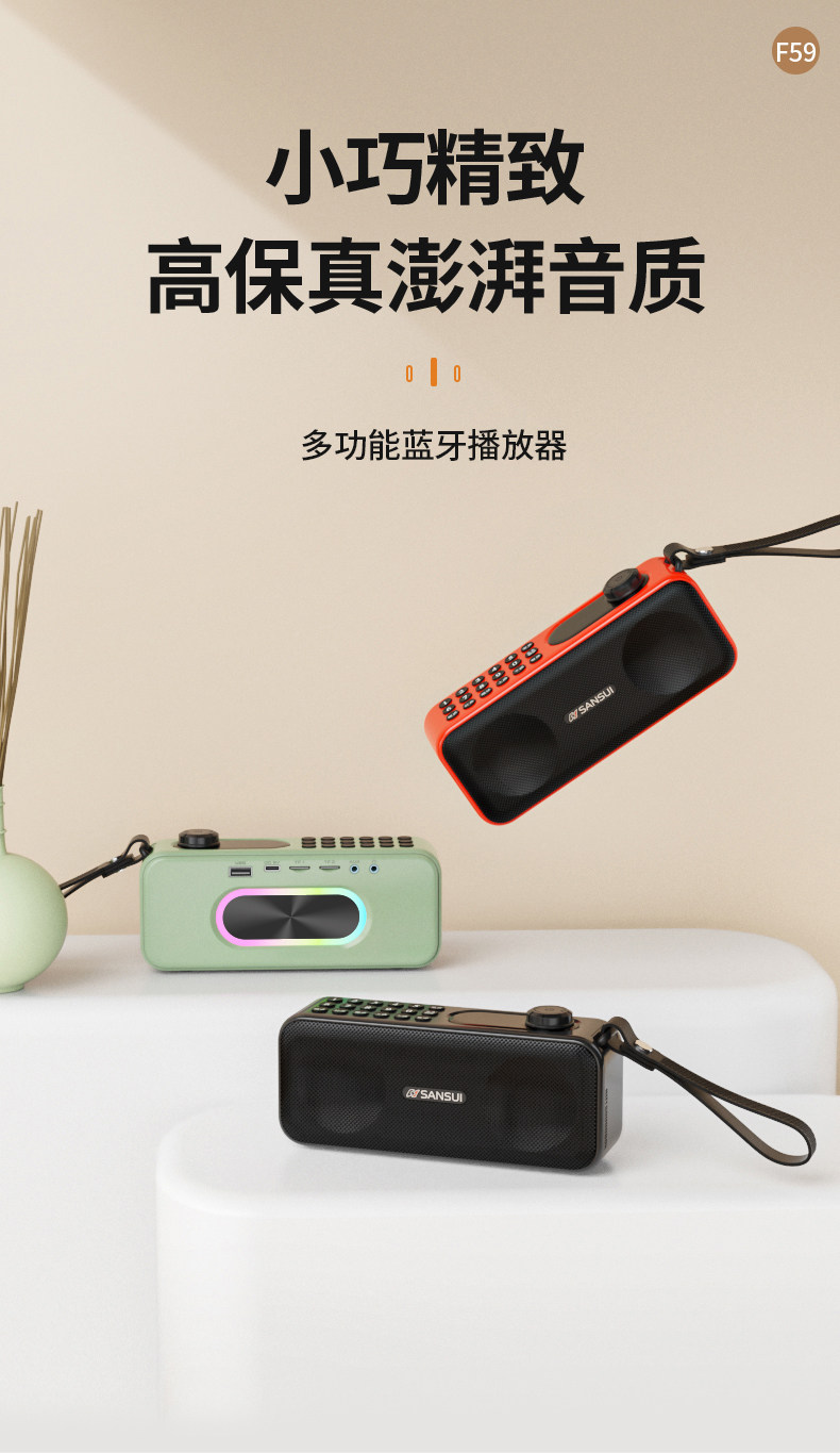 Shanshui F59 Dual Speaker Card-Insertable Bluetooth Speaker Fm Radio Recorder Heavy Bass Digital Music Player