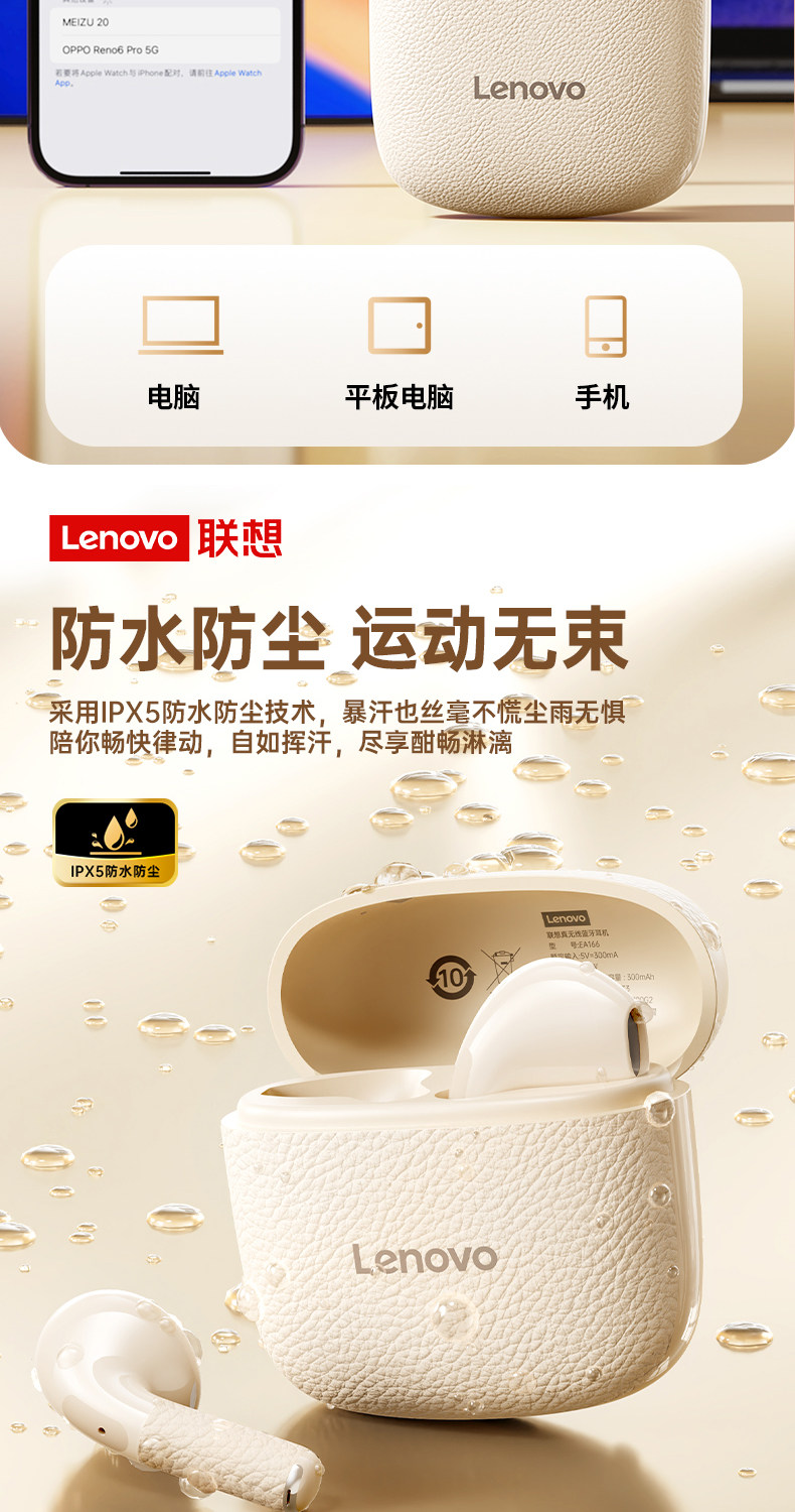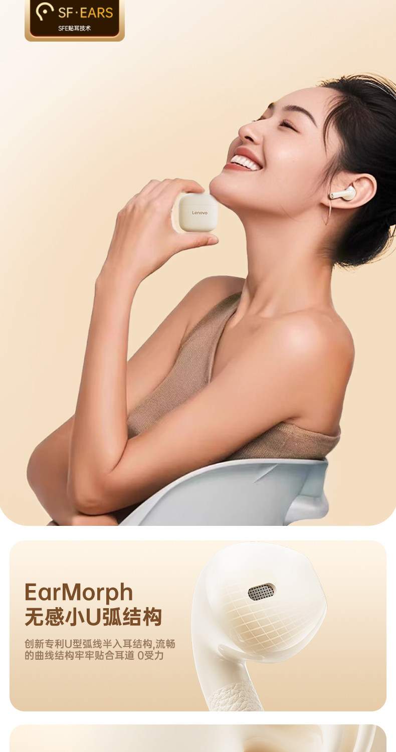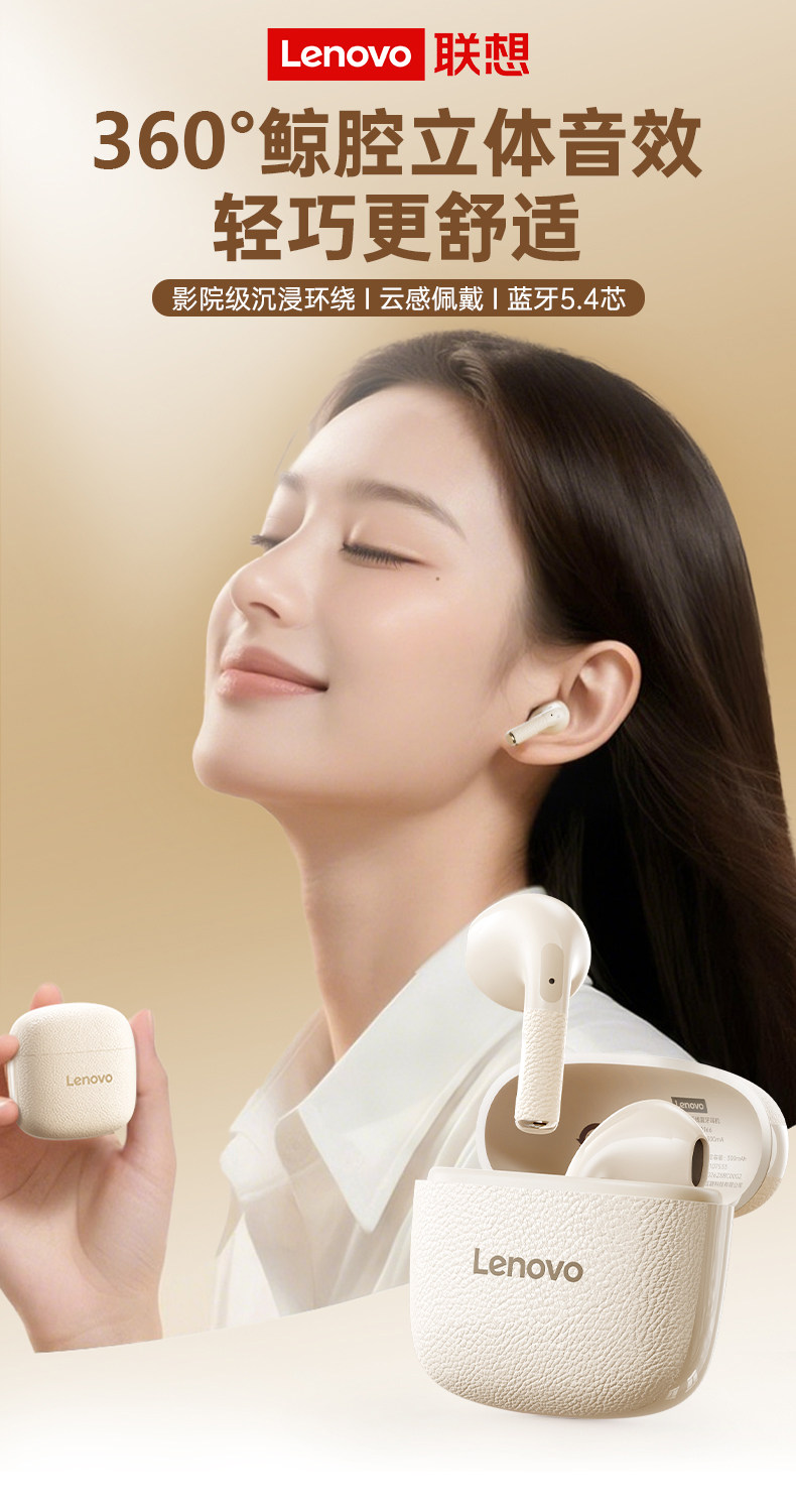 Lenovo Bluetooth Headphones 2025 New Model Semi-In-Ear for Girls, Comfortable for Long Wear, Wireless Noise Reduction, High Sound Quality, Official Genuine Product