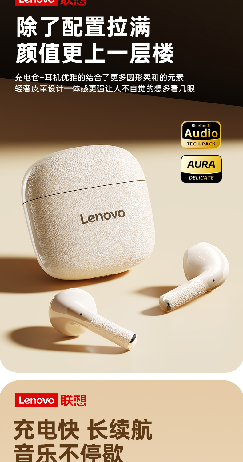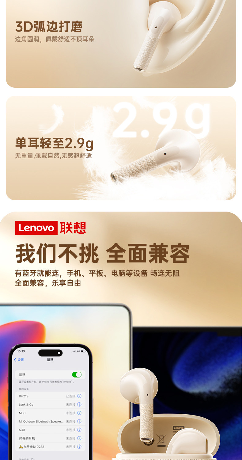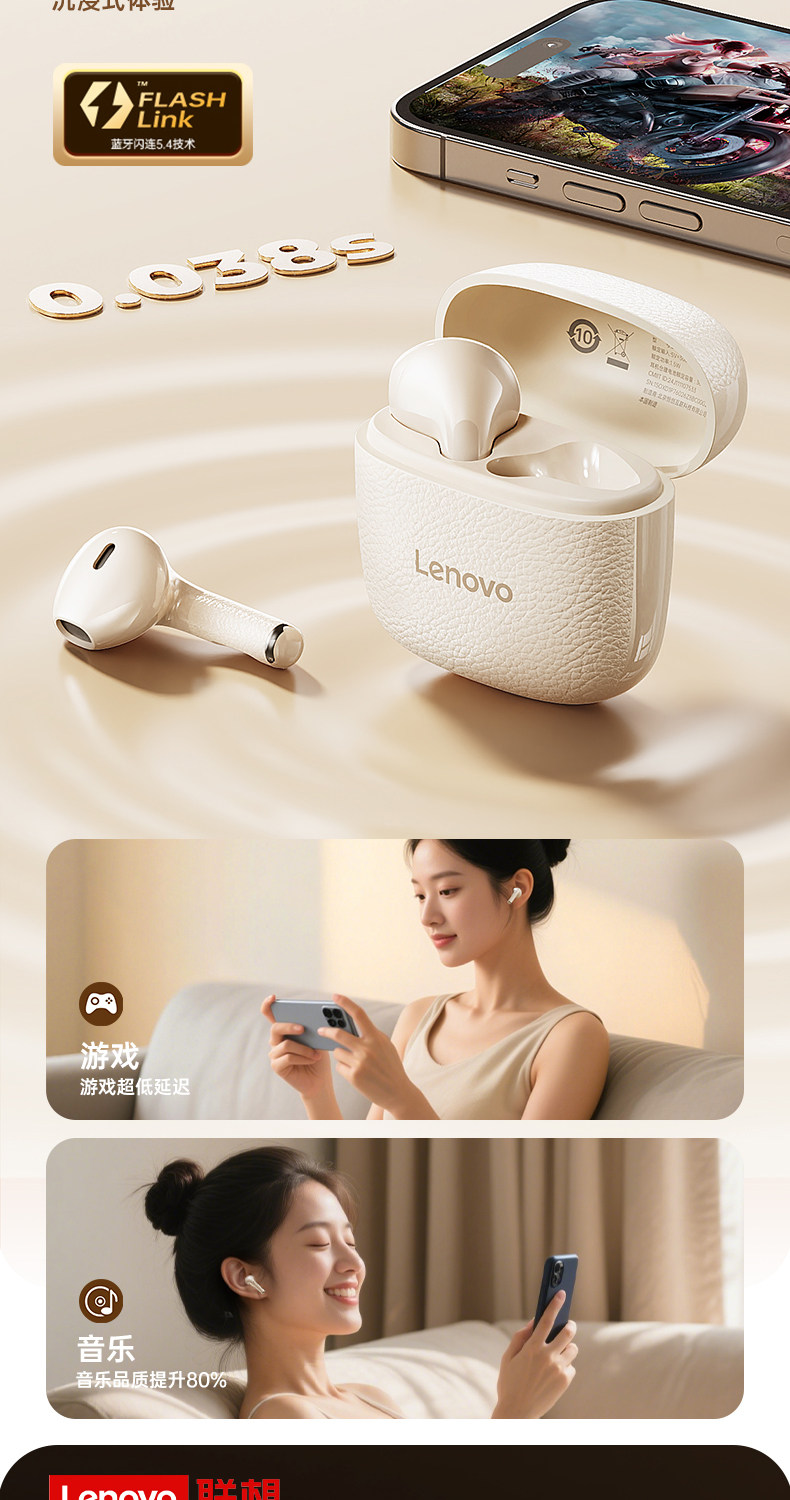 Lenovo Bluetooth Headphones 2025 New Model Semi-In-Ear for Girls, Comfortable for Long Wear, Wireless Noise Reduction, High Sound Quality, Official Genuine Product