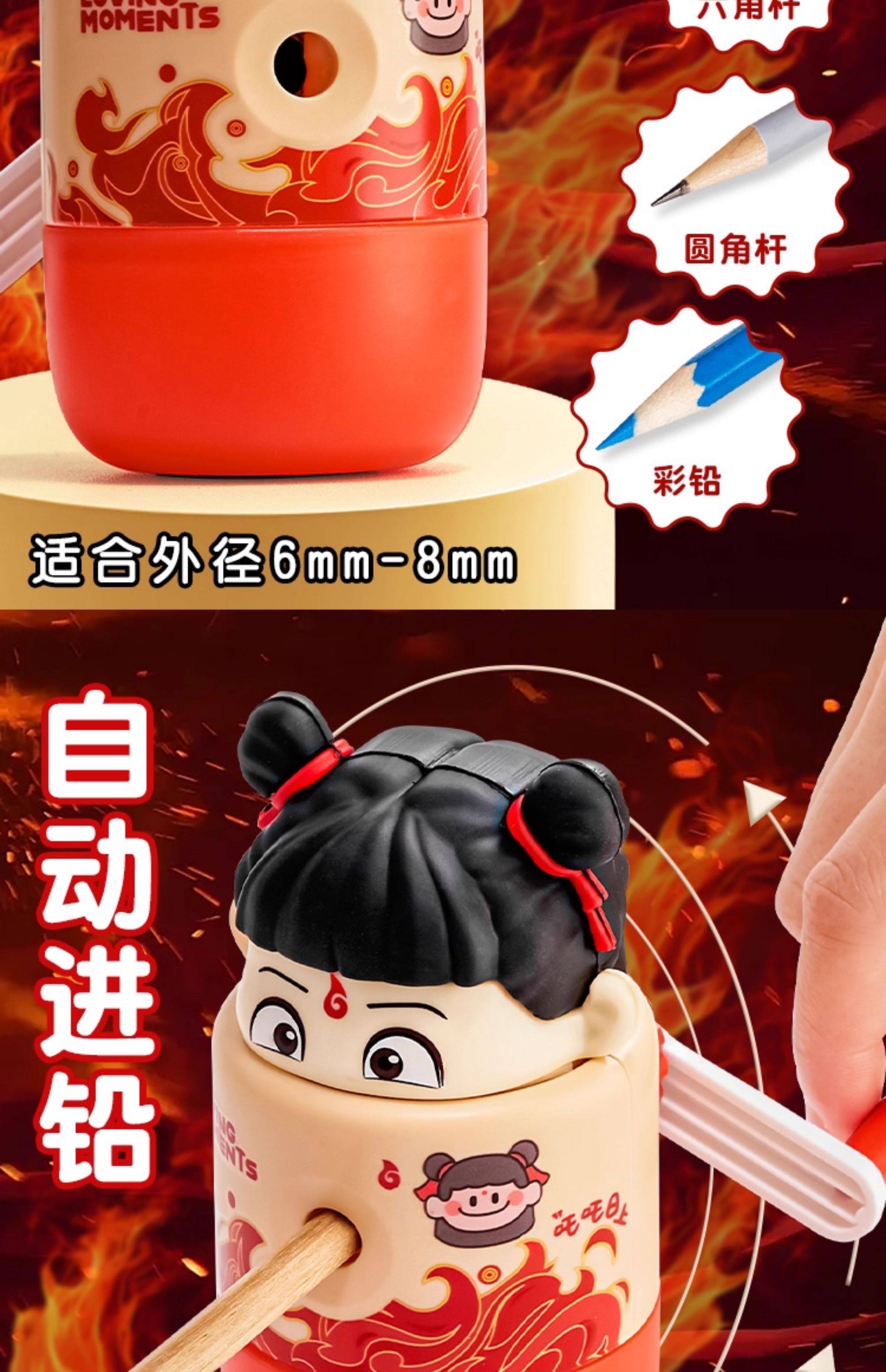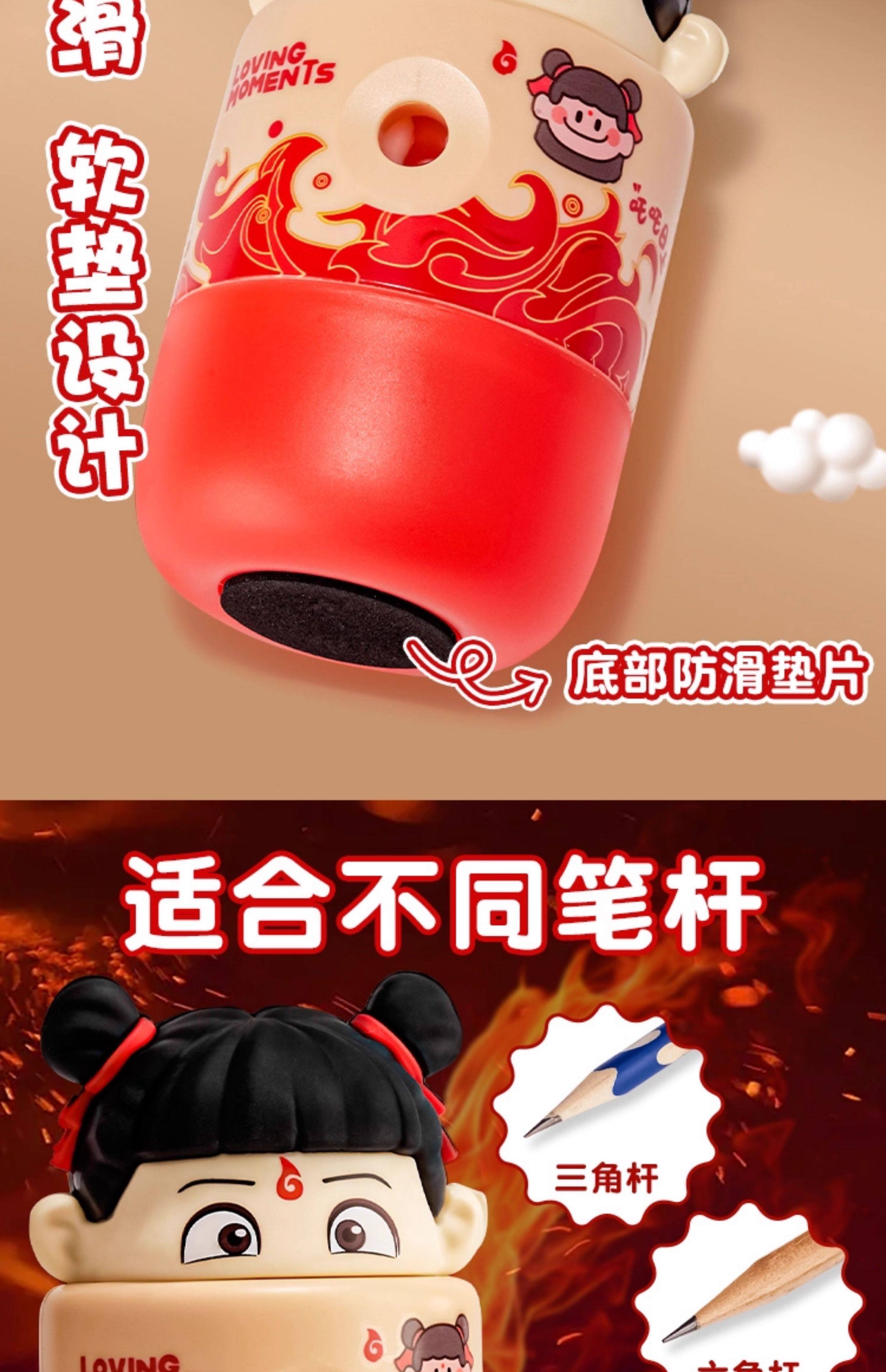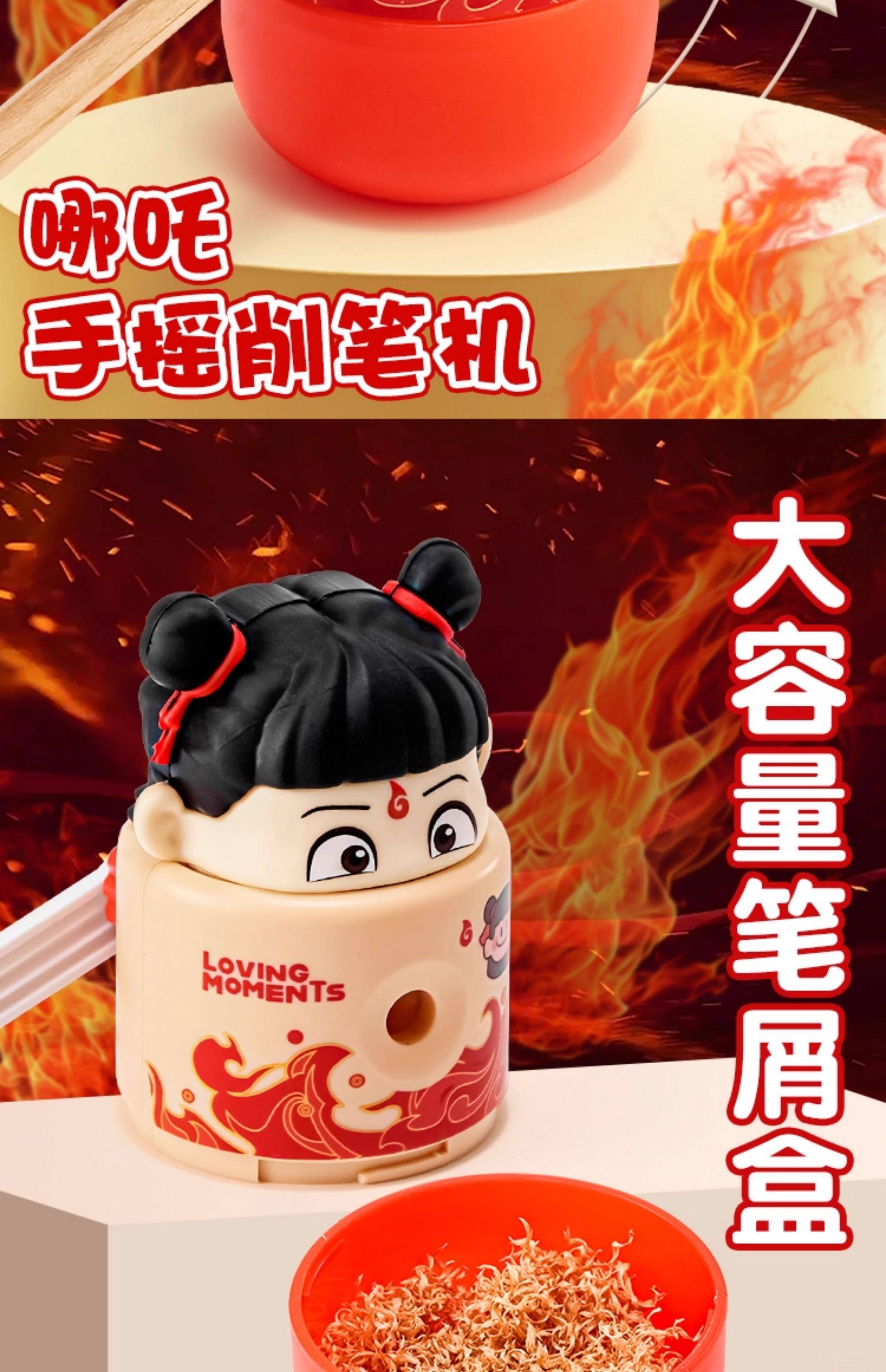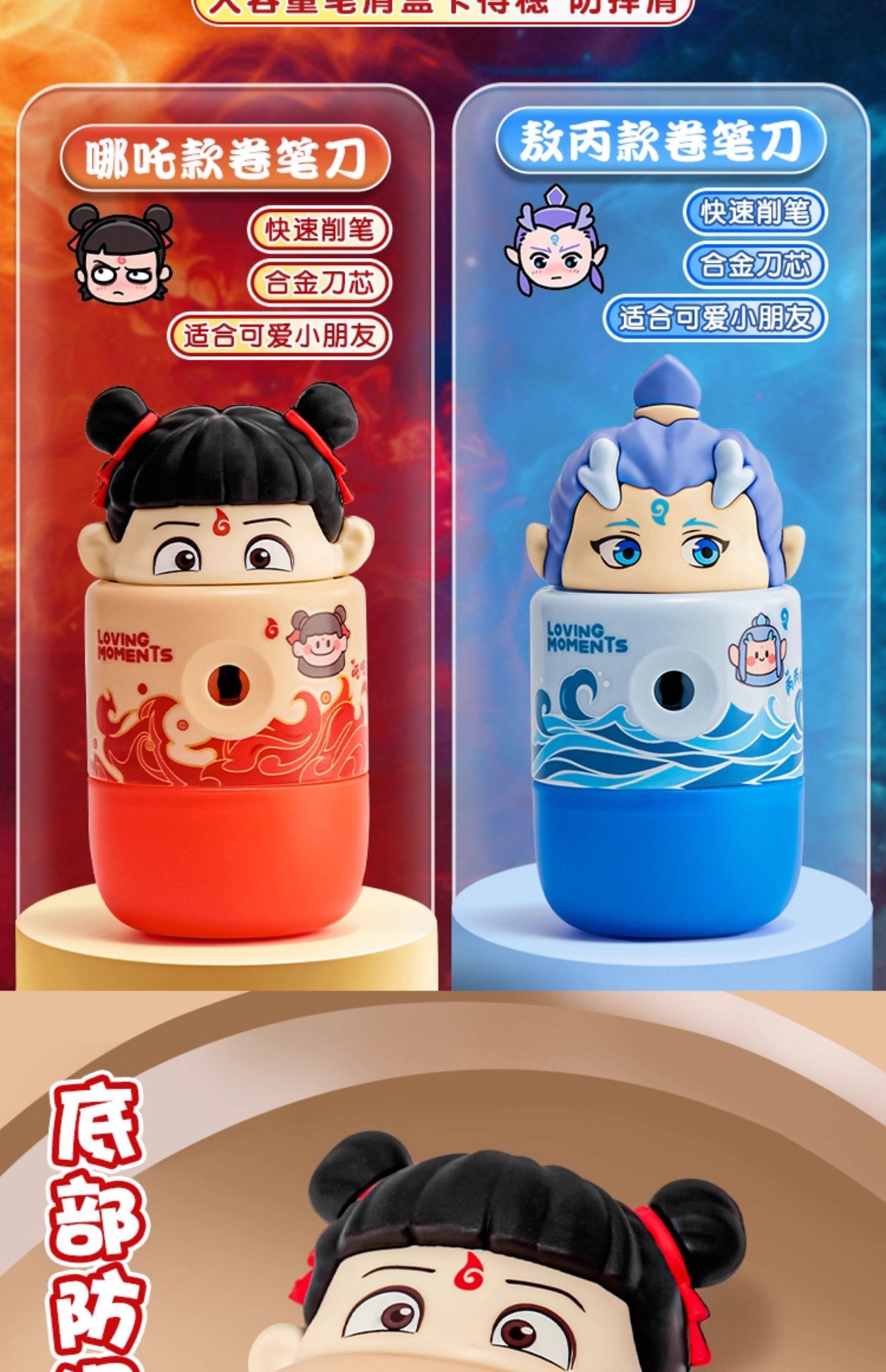 | Color Classification | Collection of 2 Styles[Red - Nezha]+[Blue - Ao Bing],[Red - Nezha]Hand Pencil Sharpener,[Blue - Ao Bing]Hand Pencil Sharpener,[Red - Nezha]Hand-Cranked Pencil Sharpener + 10 Capy Pencils,[Blue - Ao Bing]Hand-Cranked Pencil Sharpener + 10 Panda Pencils,[Red - Nezha]Hand-Cranked Pencil Sharpener + 10 Capy Pencils + 1* Pink Push-Pull Eraser + 10* Cat Claw Pencil Caps,[Blue - Ao Bing]Hand-Cranked Pencil Sharpener + 10 Panda Pencils + 1* Blue Push-Pull Eraser + 10* Cat Claw Pencil Caps |