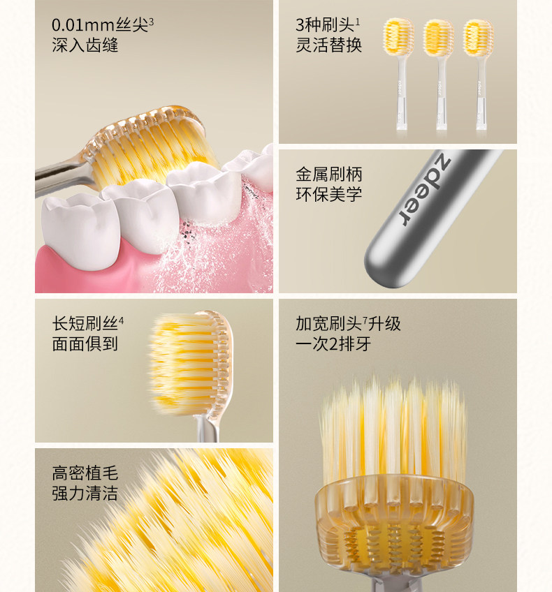 Zdeer Left Point Toothbrush Pro Model Soft Bristle Adult Interdental Brush Tongue Coating Large Head Metal Wide Brush Head Genuine Official