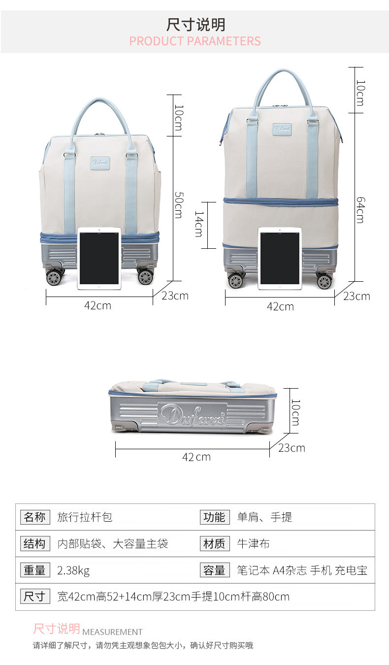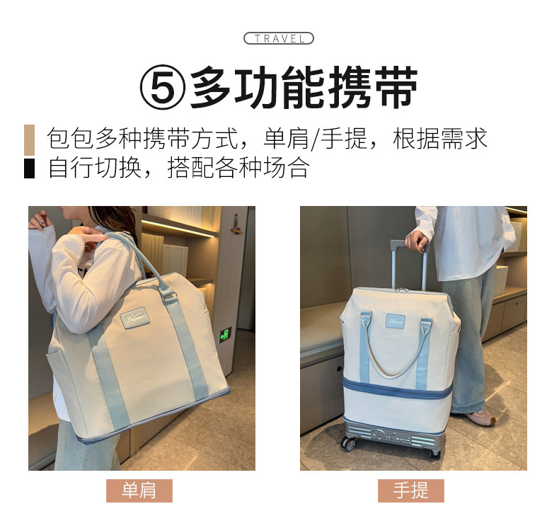 Universal Wheel Trolley Travel Bag, Short-Distance Travel Bag, Women's Large-Capacity Lightweight Luggage Bag, Multi-Purpose Maternity Storage Bag