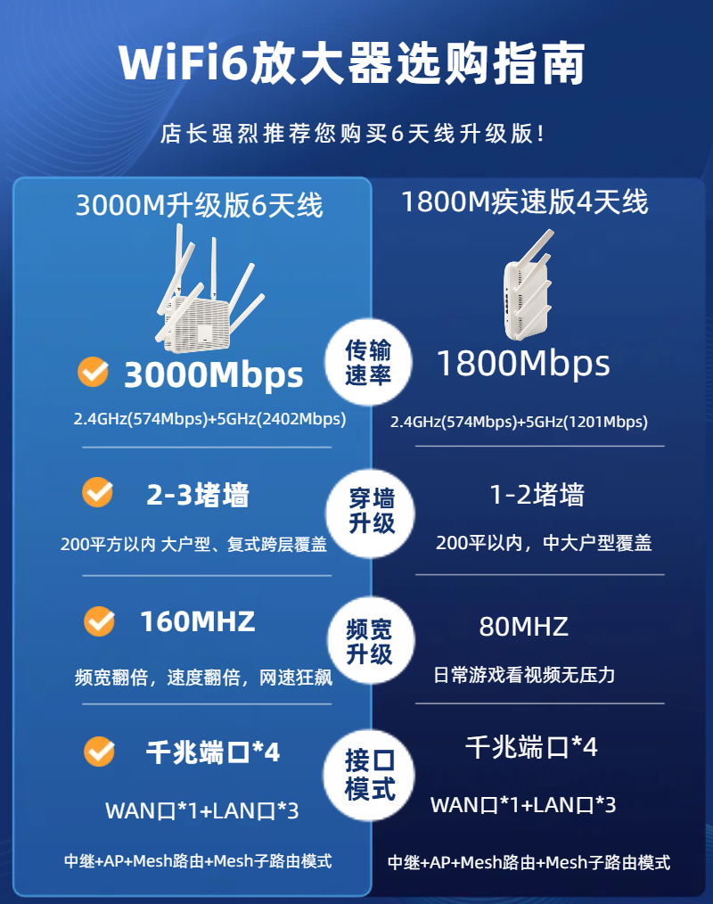 | Color Classification | 1800m High-Speed Version + Wifi6 High-Speed Internet + Mesh Interconnection,3000m Deluxe Edition 4 Antennas + 160Mhz Large Bandwidth + Wifi6 Fast Internet Access + Mesh Interconnection,3000m Upgraded Version 6 Antennas + 160Mhz Large Bandwidth + Wifi6 Fast Internet Access + Mesh Interconnection |