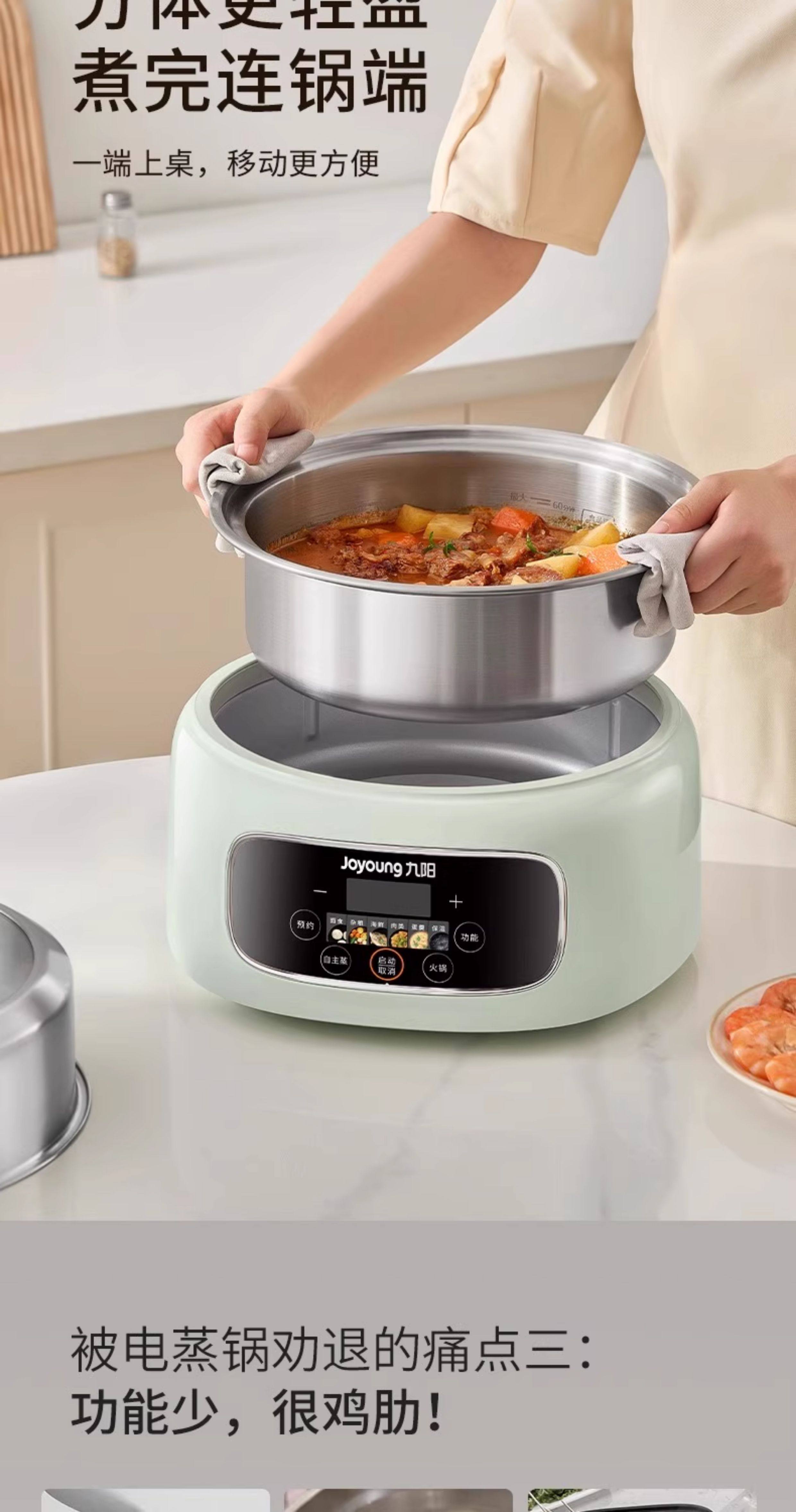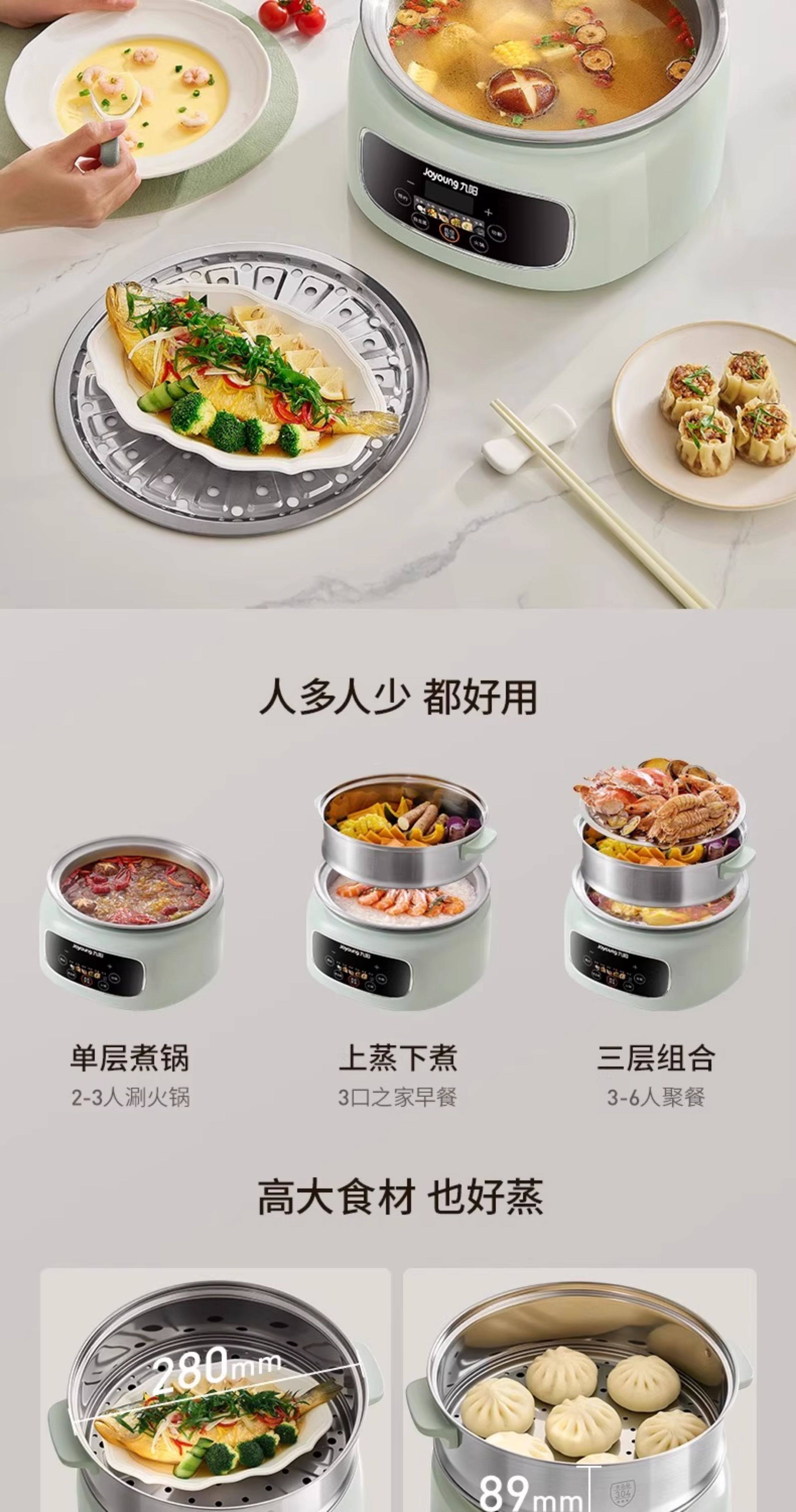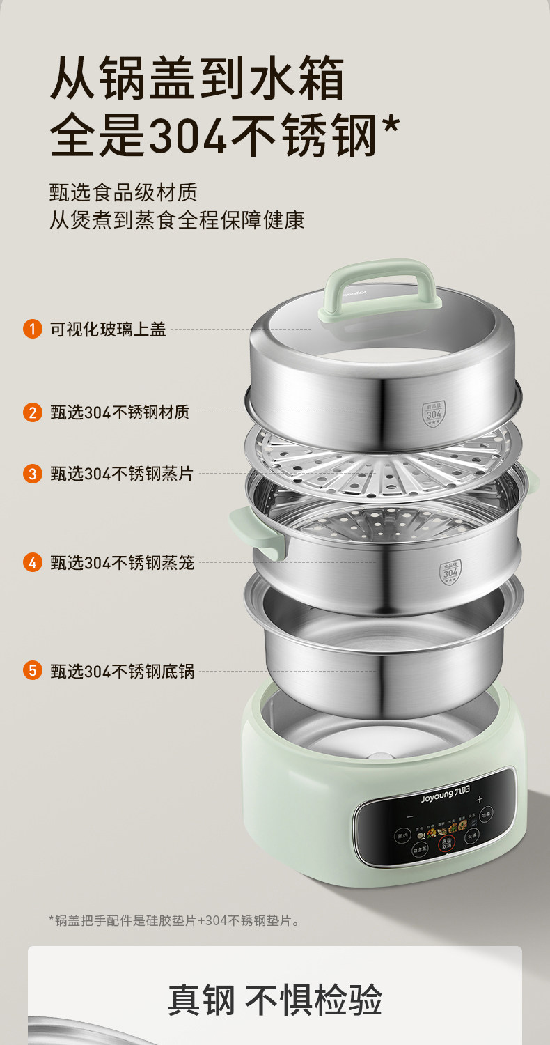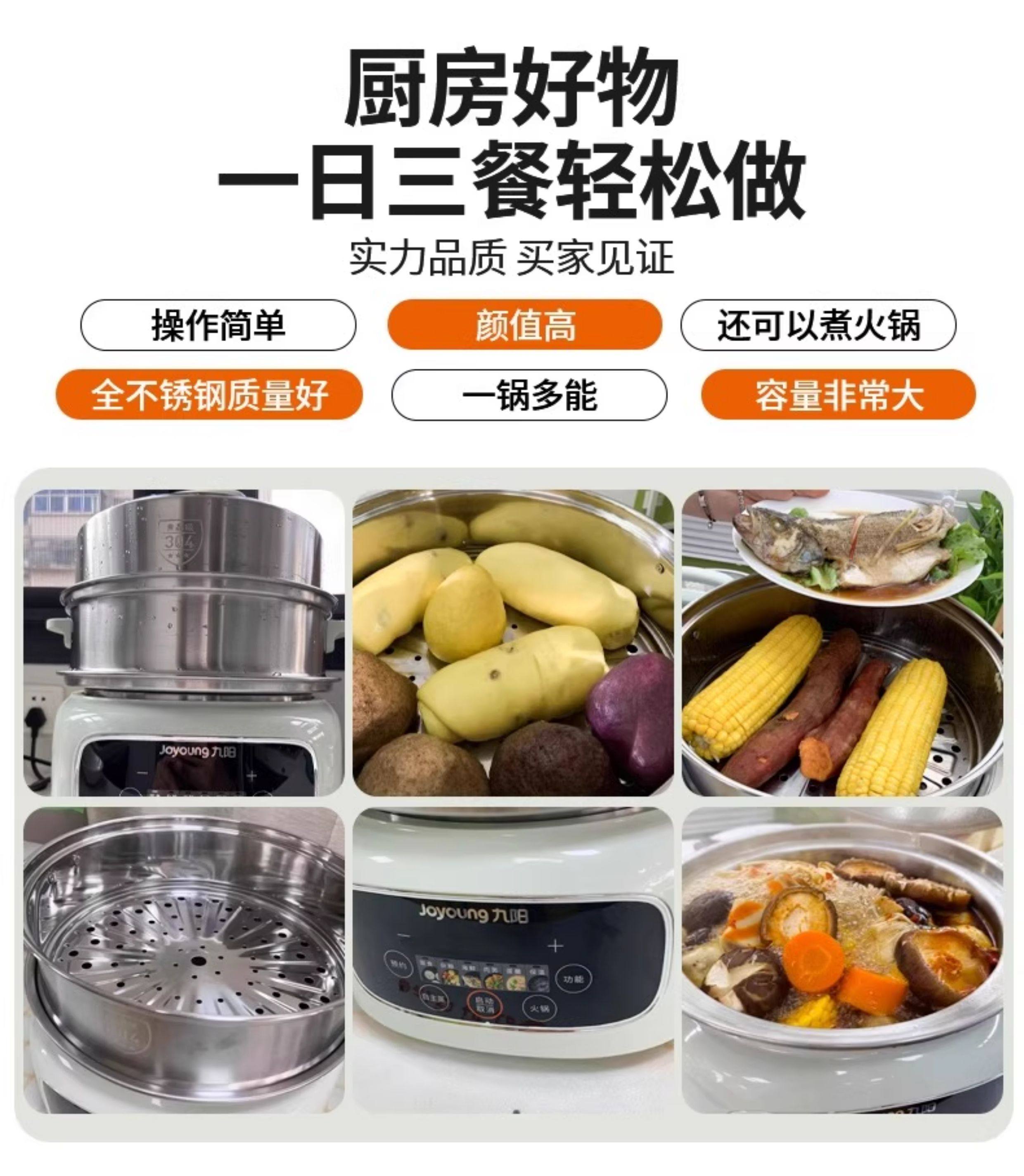 Joyoung Electric Hot Pot for Home Use, Multifunctional Split-Type Electric Cooking Pot, Large Capacity Cooking Machine, Steamer, Steaming and Stewing, Stainless Steel, New Model