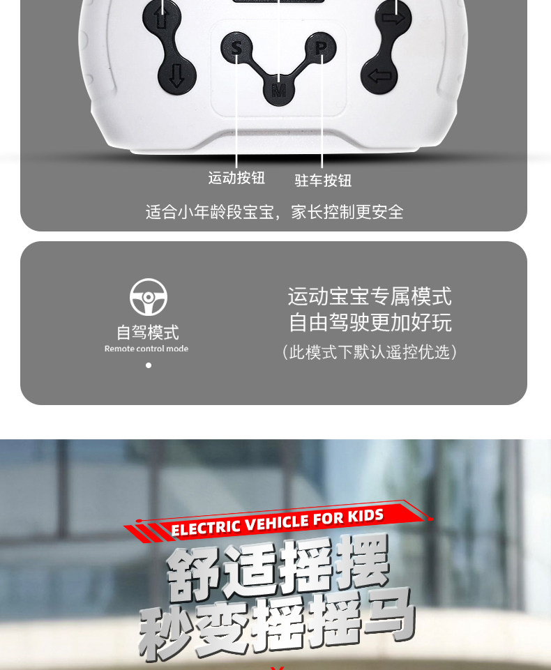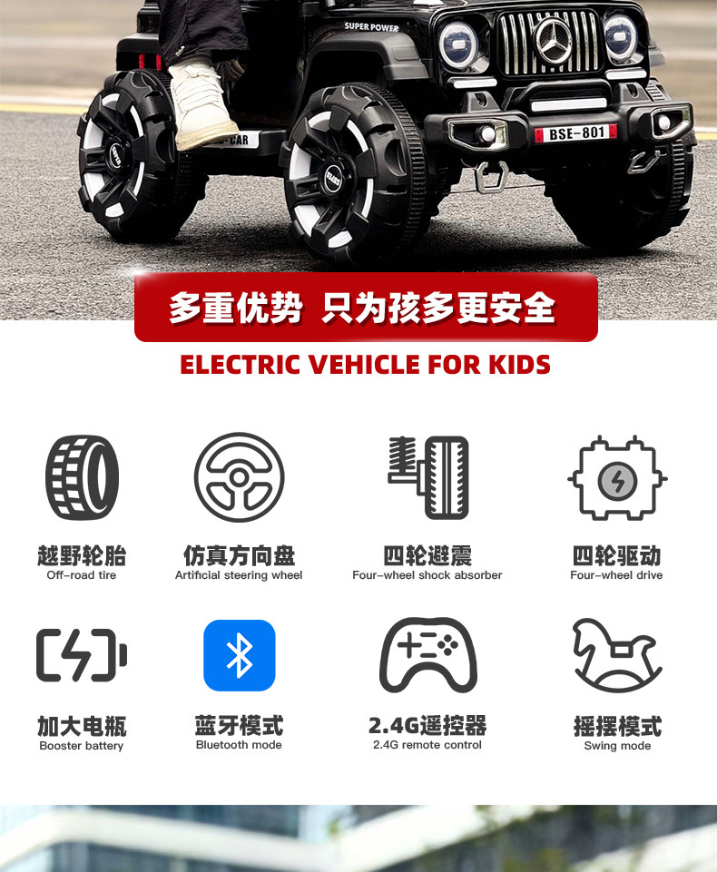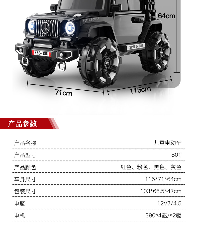 | Color Classification | Black [Standard Model] 12V 4.5Ah Large Battery + Dual Drive + Remote Control + Bluetooth + Rocking Function + Hard Seat,Gray [Standard Model] 12V4.5 Large Battery + Dual Drive + Remote Control + Bluetooth + Swing + Hard Seat,Red [Standard Model] 12V4.5 Large Battery + Dual Drive + Remote Control + Bluetooth + Swing + Hard Seat,Pink [Standard Model] 12V4.5 Large Battery + Dual Drive + Remote Control + Bluetooth + Swing + Hard Seat,Black [Standard Configuration] 12V7 Extra-Large Battery + Four-Wheel Lights + Dual Drive + Remote Control + Bluetooth + Rocking Function + Hard Seat,Gray [Medium Version] 12V7 Super Large Battery + Four-Wheel Lights + Dual Drive + Remote Control + Bluetooth + Swing + Hard Seat,Red [Medium Version] 12V7 Super Large Battery + Four-Wheel Lights + Dual Drive + Remote Control + Bluetooth + Swing + Hard Seat,Pink [Medium Version] 12V7 Super Large Battery + Four-Wheel Lights + Dual Drive + Remote Control + Bluetooth + Swing + Hard Seat,Black [High-Spec] 12V7 Extra-Large Battery + Four-Wheel Lights + Four-Wheel Drive + Remote Control + Bluetooth + Rocking Function + Leather Seat,Gray [High-Spec] 12V7 Super Battery + Four-Wheel Lights + Four-Wheel Drive + Remote Control + Bluetooth + Rocking Function + Leather Seat,Red [High-Spec] 12V7 Super Battery + Four-Wheel Lights + Four-Wheel Drive + Remote Control + Bluetooth + Rocking Function + Leather Seat,Pink [High-Spec] 12V7 Super Battery + Four-Wheel Lights + Four-Wheel Drive + Remote Control + Bluetooth + Rocking Function + Leather Seat,Black [Top-Of-The-Line] 12V7 Super Battery + Foam Tires + Four-Wheel Drive + Remote Control + Bluetooth + Rocking Function + Leather Seat,Gray [Top-Of-The-Line] 12V7 Extra-Large Battery + Foam Tires + Four-Wheel Drive + Remote Control + Bluetooth + Rocking Function + Leather Seat,Red [Top-Of-The-Line] 12V7 Super Battery + Foam Tires + Four-Wheel Drive + Remote Control + Bluetooth + Rocking Function + Leather Seat,Pink [Top Model] 12V7 Super Battery + Foam Wheel + Four-Wheel Drive + Remote Control + Bluetooth + Swing + Leather Seat,Black [Painted Finish] 12V7 Extra-Large Battery + Four-Wheel Lights + Four-Wheel Drive + Remote Control + Bluetooth + Rocking Function + Leather Seat,Red [Painted Finish] 12V7 Super Battery + Four-Wheel Lights + Four-Wheel Drive + Remote Control + Bluetooth + Rocking Function + Leather Seat |