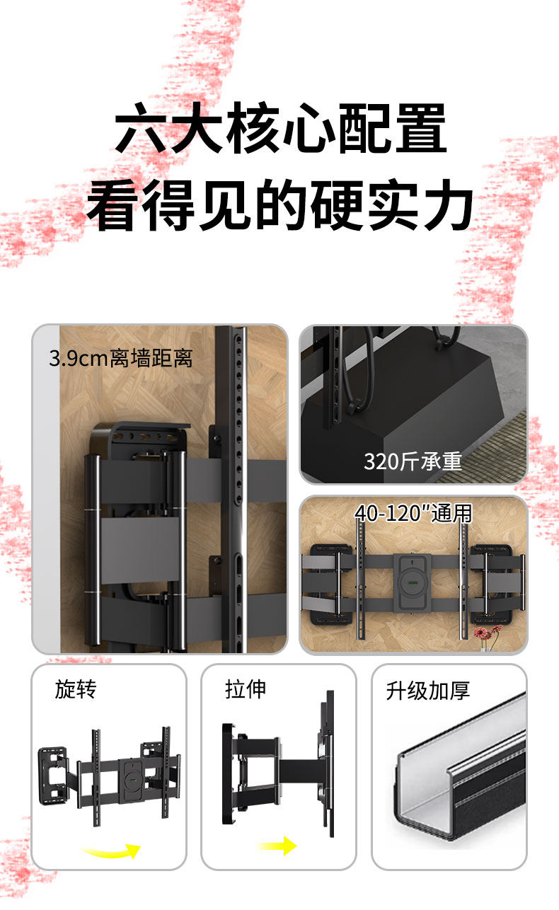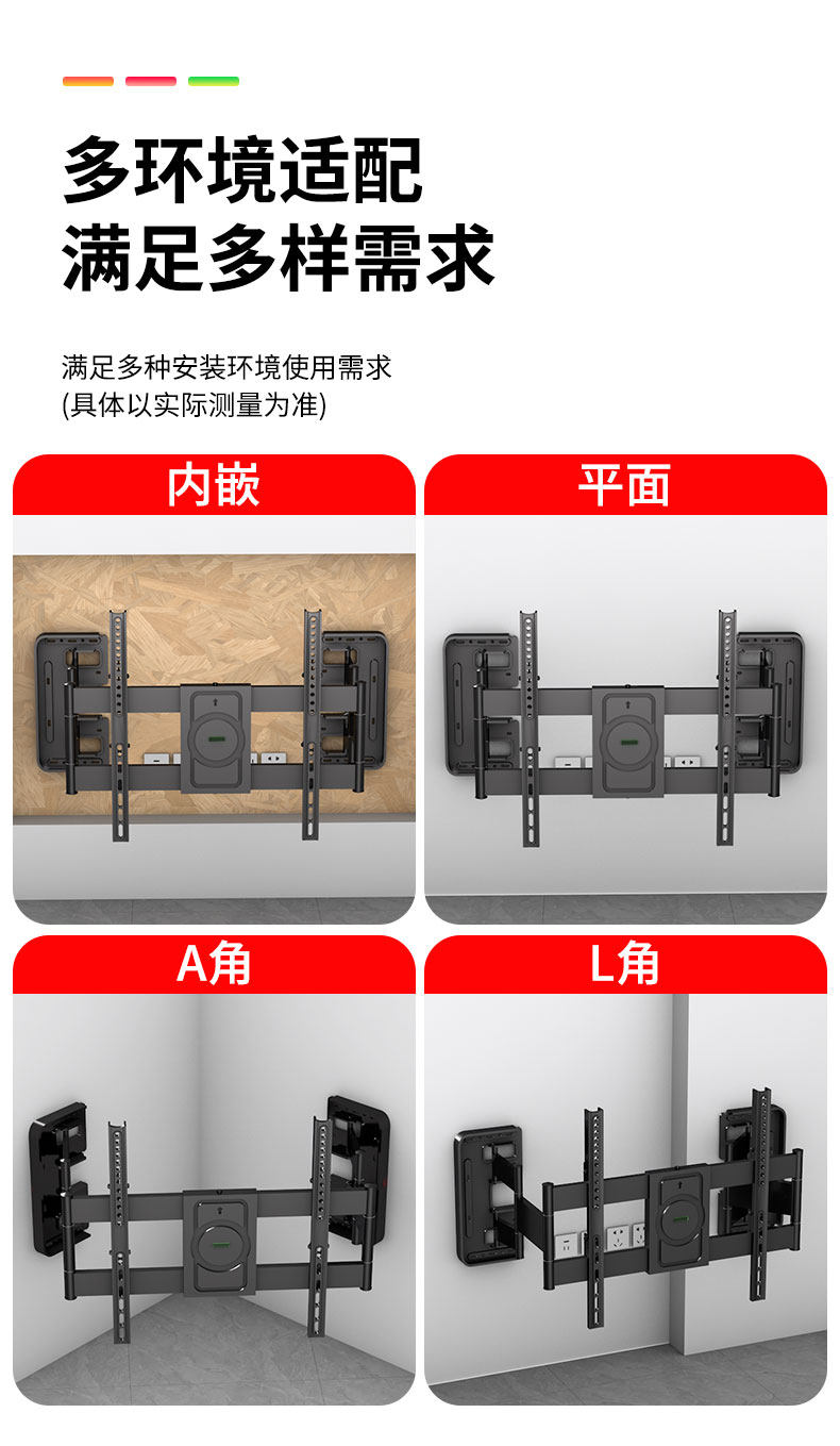 | Color Classification | Reinforced Axis【 32-65inch 】About 3cm Wall-Mounted/Millimeter Fine-Tuning/Does Not Block the Socket and Subwoofer,Reinforced Axis【 40-90inch 】About 3cm Wall-Mounted/Millimeter Fine-Tuning/Does Not Block the Socket and Subwoofer,Reinforced Axis【 65-100inch 】About 3cm Wall-Mounted/Millimeter Fine-Tuning/Does Not Block the Socket and Subwoofer,Reinforced Axis【 75-120inch 】About 3cm Wall-Mounted/Millimeter Fine-Tuning/Does Not Block the Socket and Subwoofer |