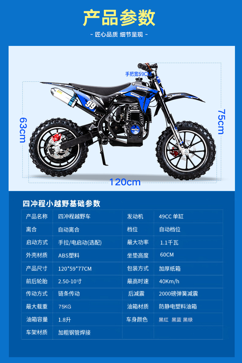 25 Years New Model Motorcycle Children's 49Cc Mini Motorcycle Mini Small Off-Road Pure Gasoline Adult Off-Road Vehicle