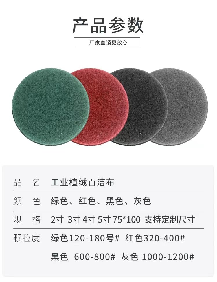 Scouring Pad 2inch 3inch 4inch 5inch Round Self-Adhesive Flocking Industrial Scouring Pad Stainless Steel Wire Drawing Cloth for Grinding and Polishing