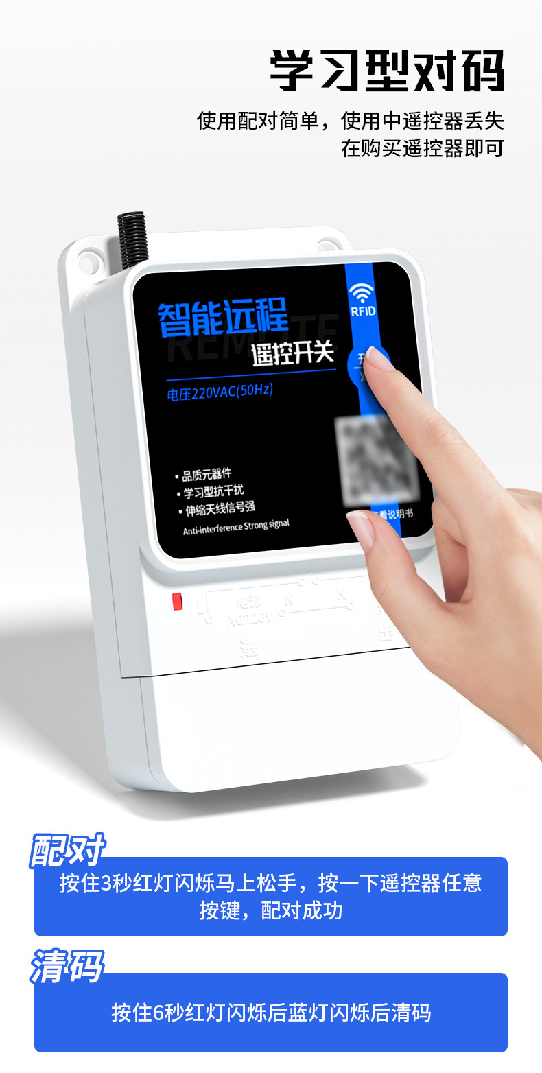 Taoyu High-Power Water Pump Wireless Remote Control Switch Smart 220V Remote Random Sticker Power Control Remote Control