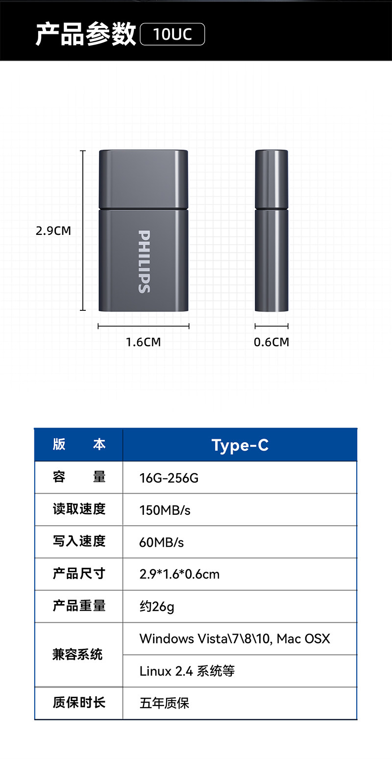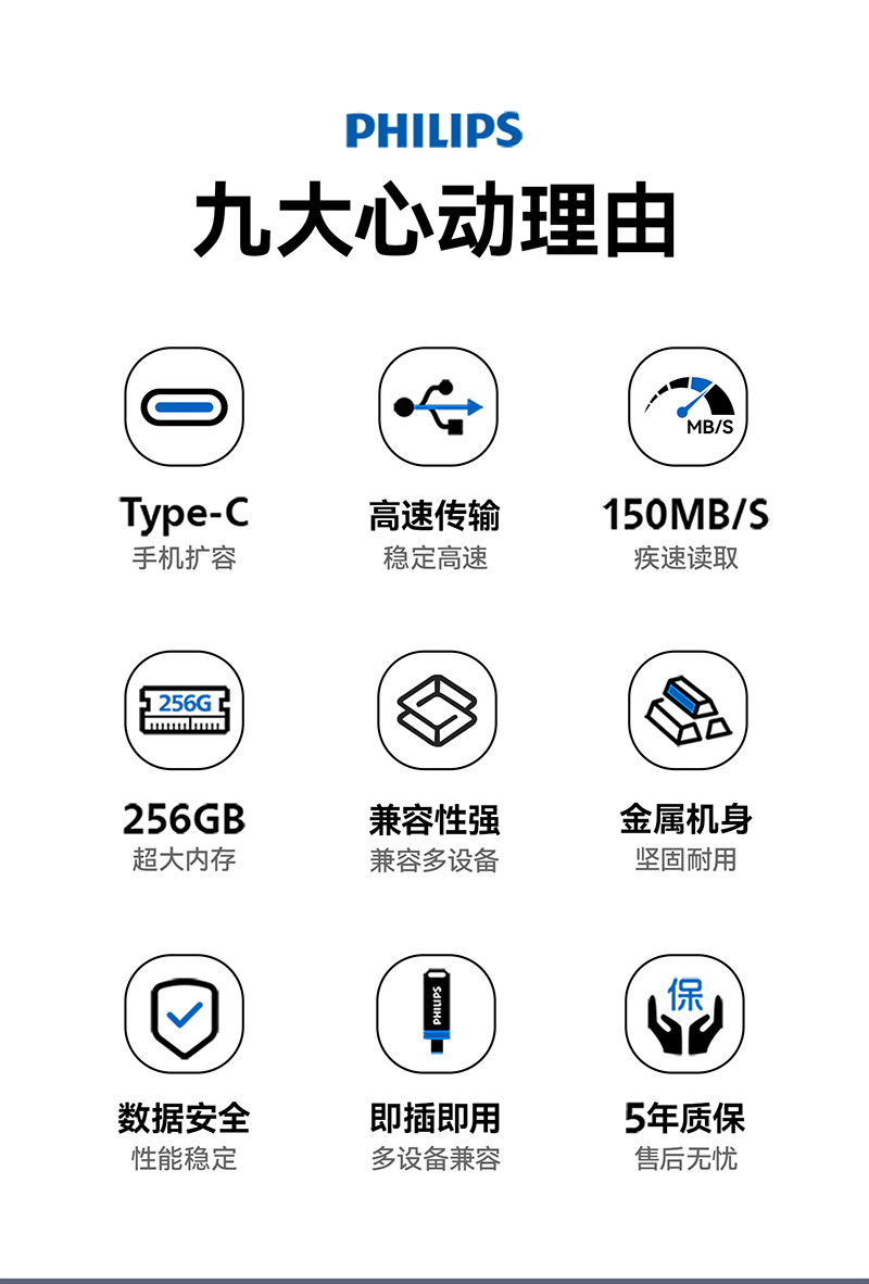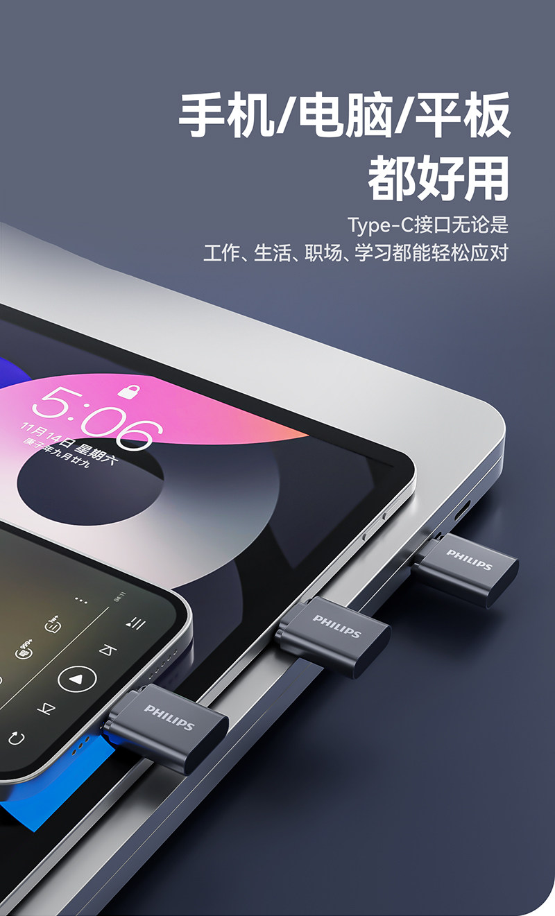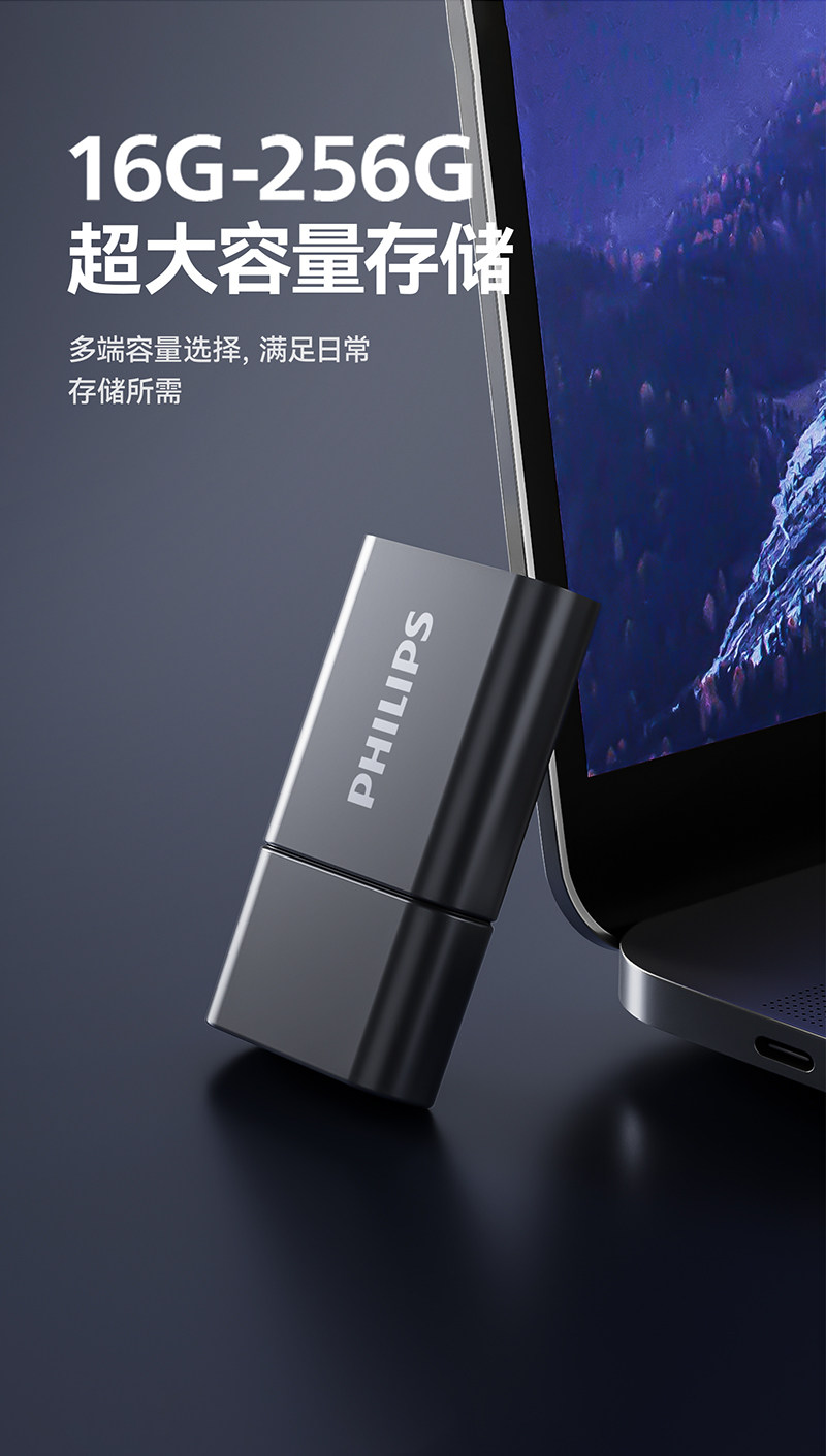 Philips Mini USB Flash Drive Typec Mobile Phone Computer High-Speed Storage Car USB Flash Drive Official Flagship Store Genuine 128g