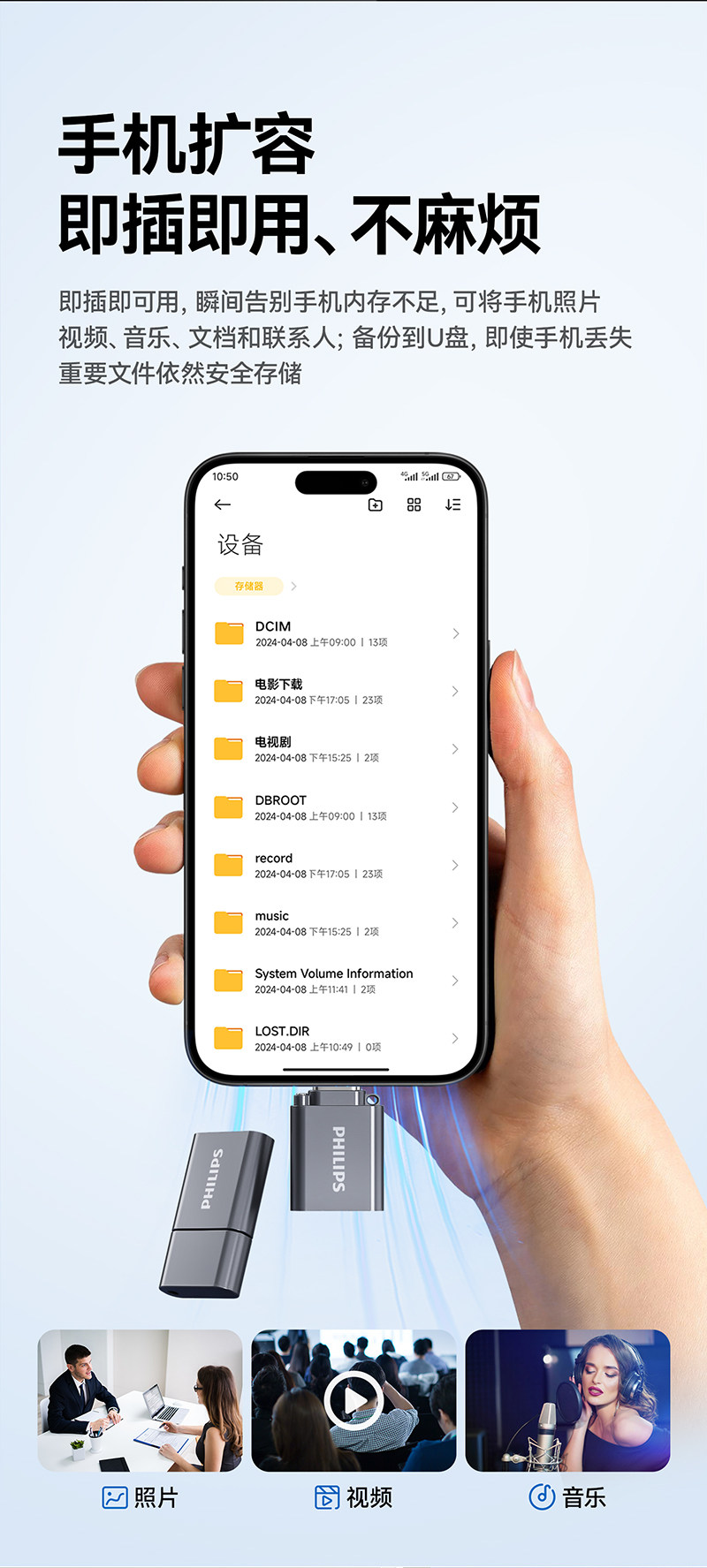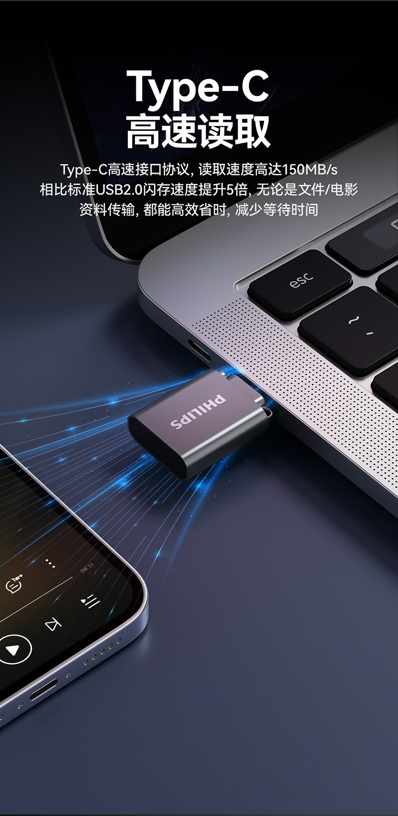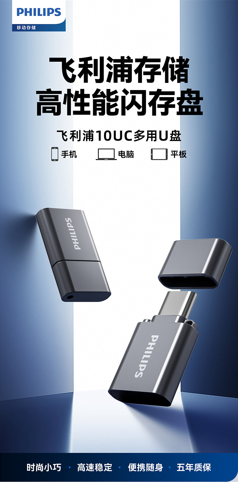 Philips Mini USB Flash Drive Typec Mobile Phone Computer High-Speed Storage Car USB Flash Drive Official Flagship Store Genuine 128g
