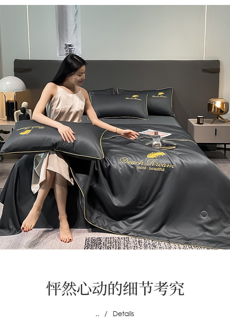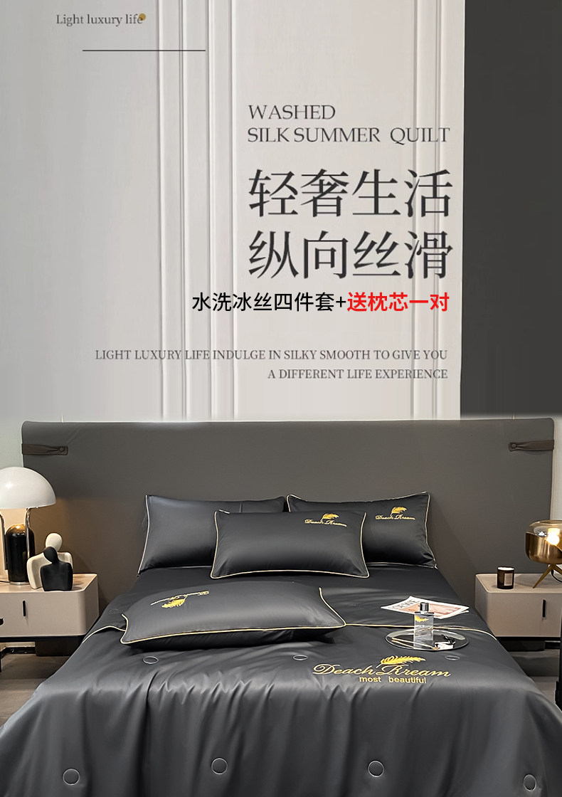Ice Silk Summer Cooling Quilt Air-Conditioning Quilt Four-Piece Set Student Dormitory Six-Piece Set Air-Conditioning Thin Quilt Complete Set for Summer