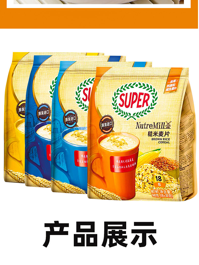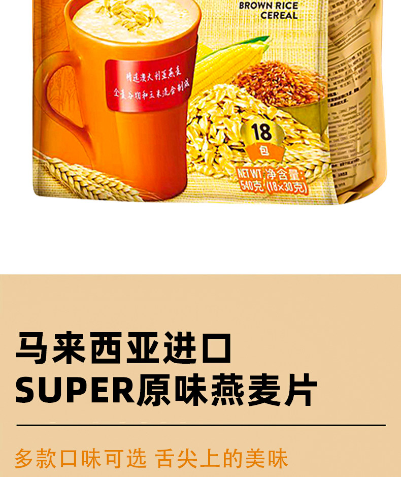 Malaysia Imported Super Super Oatmeal Original Sugar-Free Low-Sugar Ready-To-Eat Cereal Nutritious Breakfast