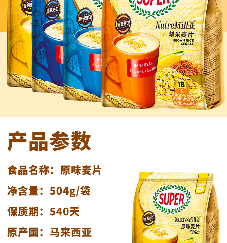 | Flavor | Original Flavor 504g[18 Small Packets]*1 Bag,Original Flavor 504g[18 Small Packets]*2 Bags,Double Oats 540g[18 Small Packets]*1 Bag,Double Oats 540g[18 Small Packets]*2 Bags,Low Sugar Oatmeal 450g[18 Small Packets]*1 Bag,Low Sugar Oatmeal 450g[18 Small Packets]*2 Bags,Brown Rice Oatmeal 540g[18 Small Packets]*1 Bag,Brown Rice Oatmeal 540g[18 Small Packets]*2 Bags |