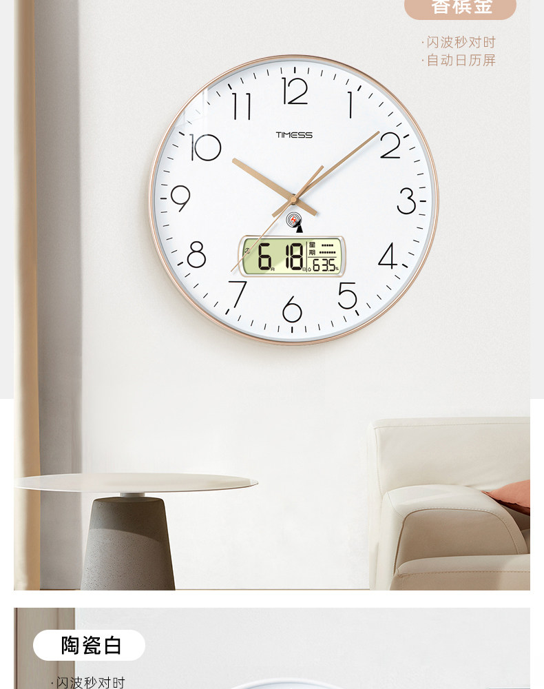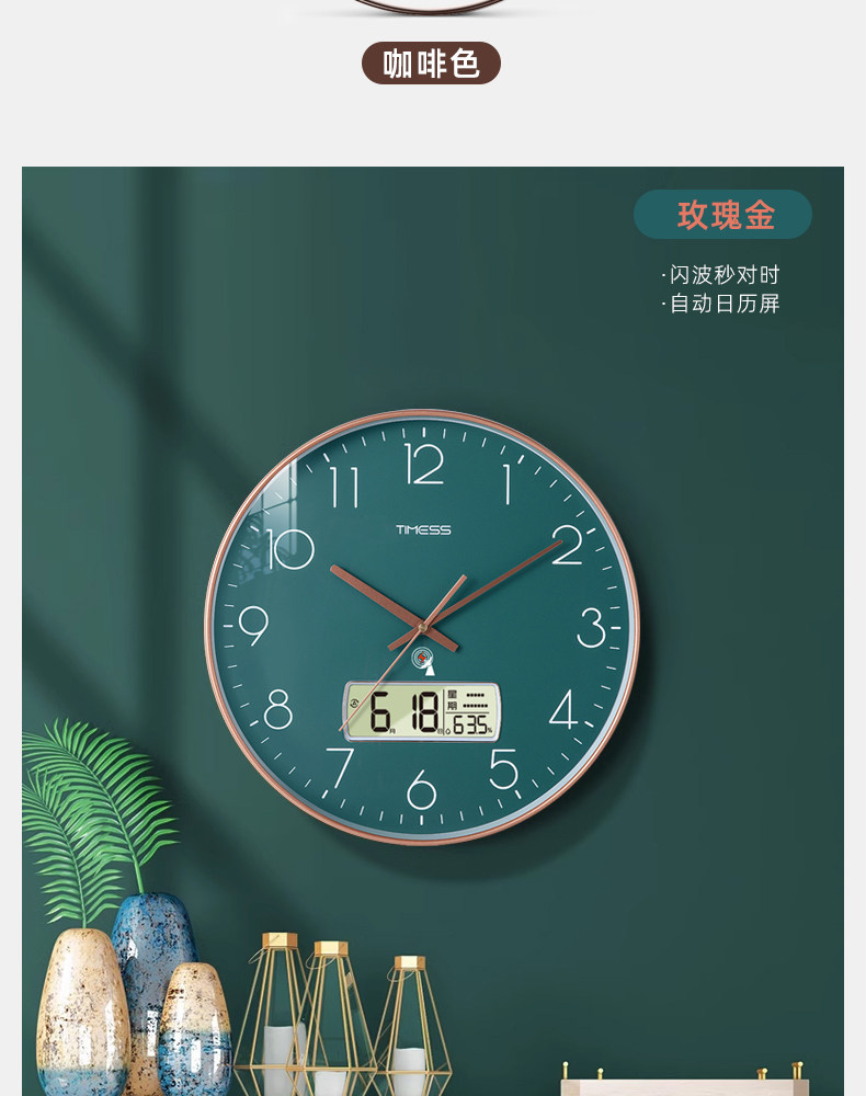 | Color Classification | Exclusive Flash Wave Synchronization Technology,No Setup Required/Accurate When Powered on [True Fully Automatic Wall Clock],Champagne Gold [Fully Automatic Flash Wave Time Adjustment [Automatic Time Adjustment + Automatic Calendar + Precise Seconds],Sapphire Green [Fully Automatic Flash Wave Time Adjustment [Automatic Time Adjustment + Automatic Calendar + Precise Seconds],Obsidian Black [Fully Automatic Flash Wave Time Adjustment [Automatic Time Adjustment + Automatic Calendar + Precise Seconds],Ceramic White [Fully Automatic Flash Wave Time Adjustment [Automatic Time Adjustment + Automatic Calendar + Precise Seconds],Coffee Brown [Fully Automatic Flash Wave Time Synchronization [Automatic Time Synchronization + Automatic Calendar + Precise to the Second]] |
