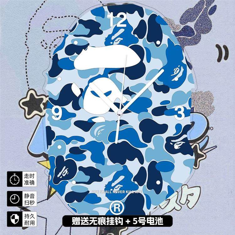 Bape Camouflage Living Room Home Cartoon Creative Design Personalized Decorative Painting Art Wall Clock High Aesthetic Value Comes with Accessories