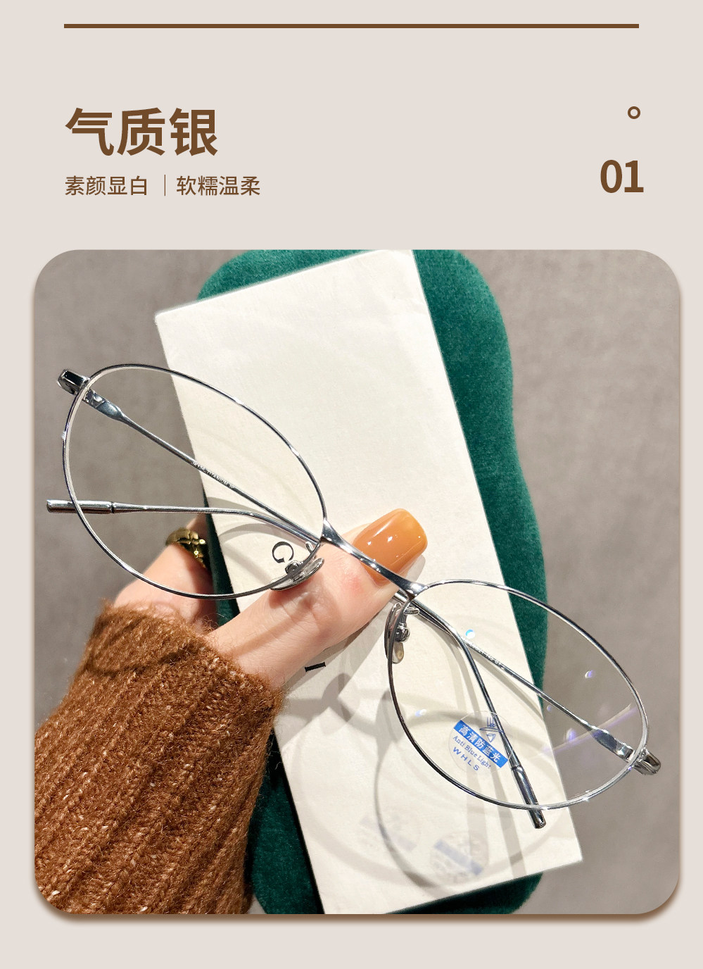 Cool and Intellectual Cat-Eye Silver Wire Glasses for Nearsighted Women, Large Frame, Ultra-Light 9g Titanium Frame, Silver Frame, Can Be Customized with Prescription Lenses