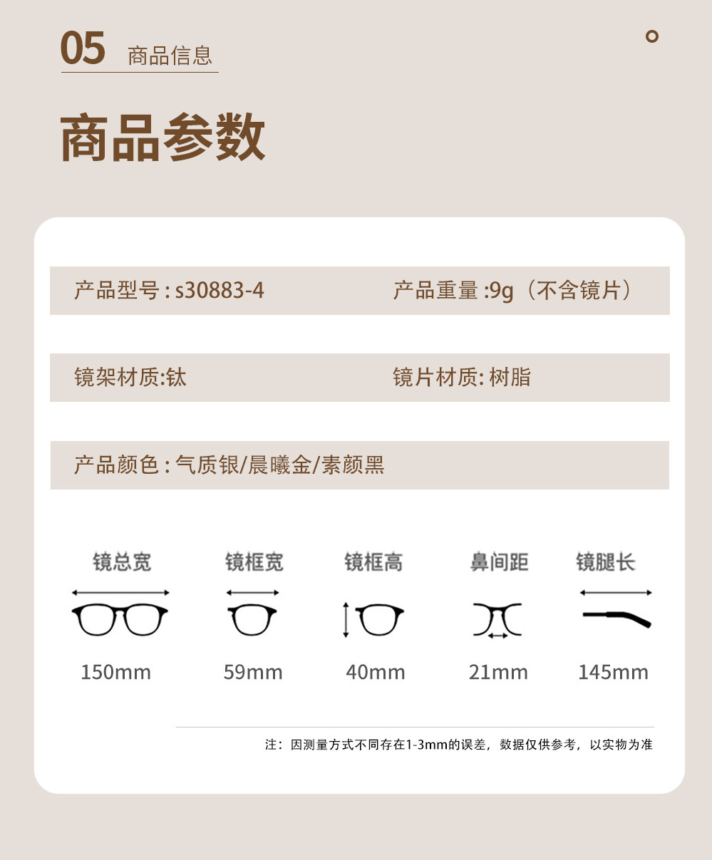 | Color Classification | Titanium Frame Silver (Same Style as Model),Titanium Frame Gold,Titanium Frame Black |