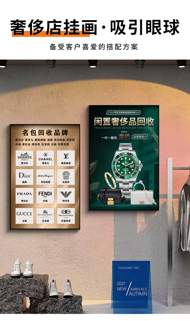 Decorative Paintings for Pawn Shops and Consignment Stores, Posters for Showcasing Luxury Watches and Bags, Promotional Wall Art for Luxury Goods, Tobacco and Alcohol, and High-End Gift Recycling Paintings