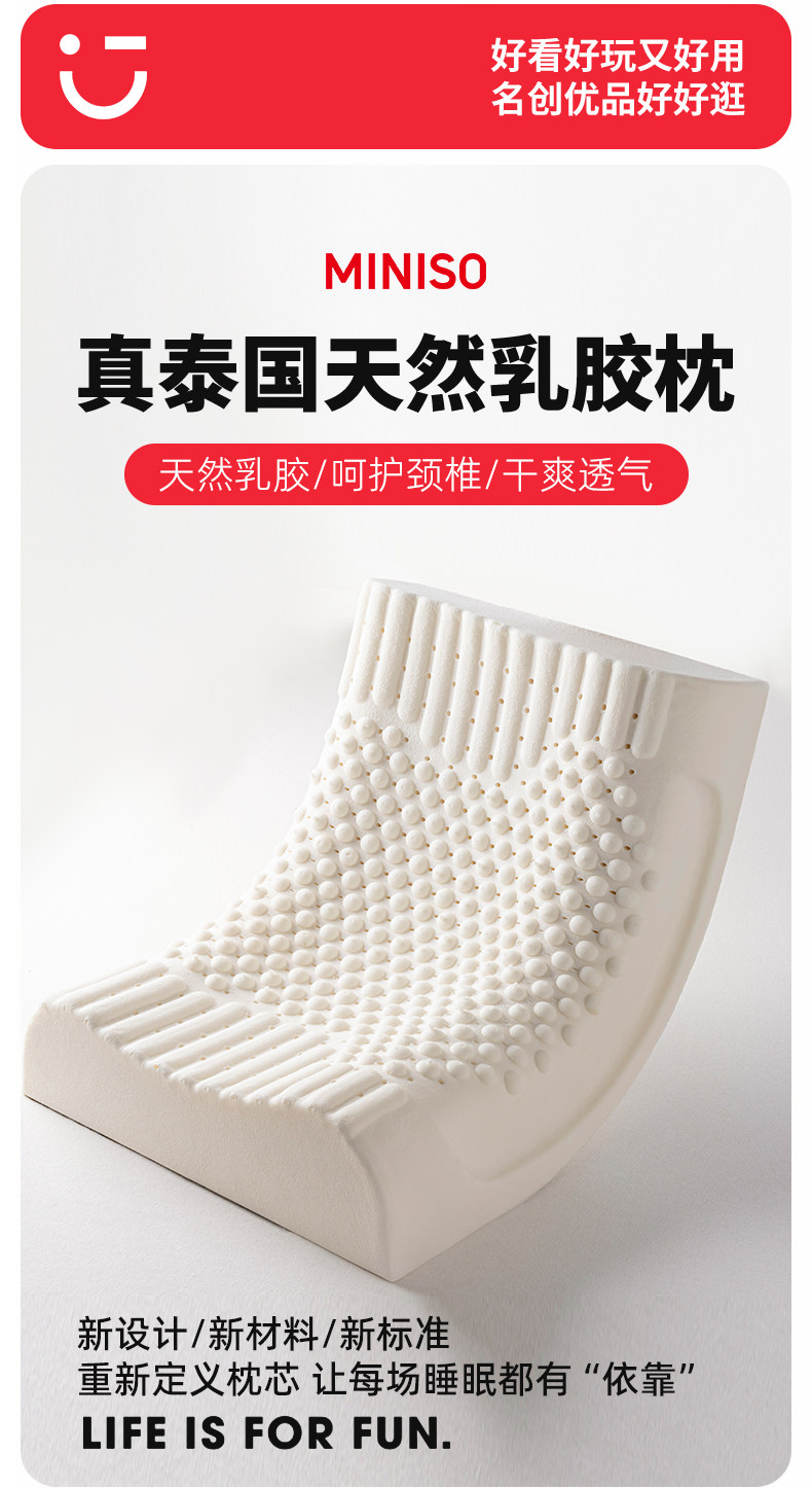 Miniso Thailand Genuine Natural Latex Pillow Core, Cervical Spine Protection, Sleep Aid, Special Silicone Rubber for Adults