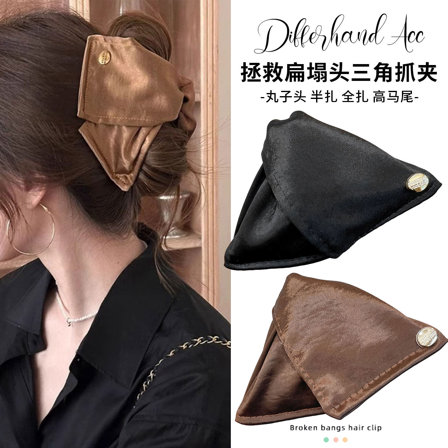 Save the Flat Hair with This Satin Shell Triangle Claw Clip for Women, 2025 New Style, Voluminous Back of the Head, High-End Ponytail Hair Clip