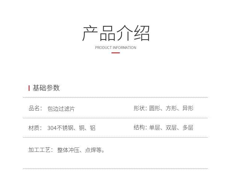 304 Edge-Wrapped Filter Mesh, Round 316 Stainless Steel Multi-Layer Seamless Stamped Filter Mesh, Copper-Aluminum Edge-Wrapped Metal Screen