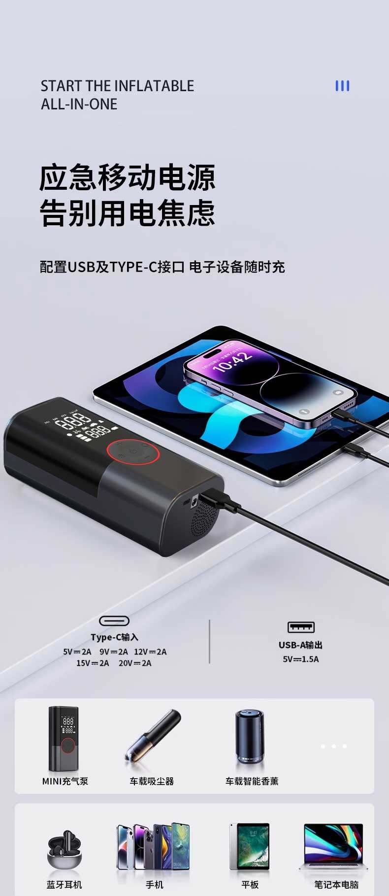 Car Air Pump, Electric Air Pump, Car Emergency Jump Starter, Battery Emergency Power Supply, Power Bank, Ignition Tool