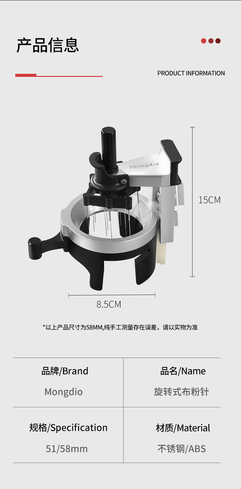 Mongdio Coffee Powder Distributor Needle Type Adjustable Rotating Powder Stirring Needle for Evenly Breaking up Clumps