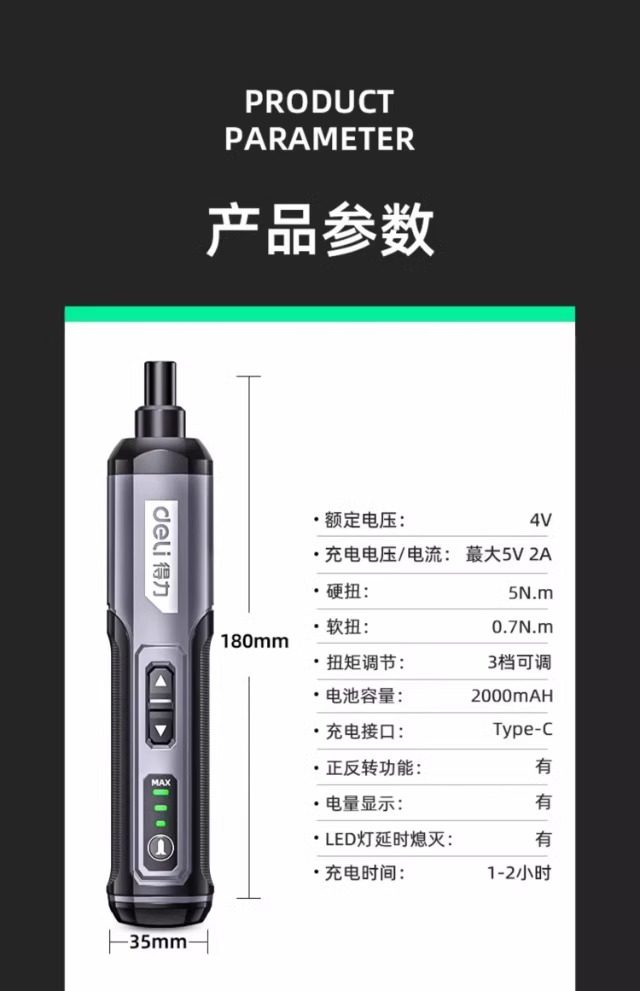 Deli Electric Screwdriver Rechargeable Household Small Lithium Battery Mini Automatic Screwdriver Tool Set