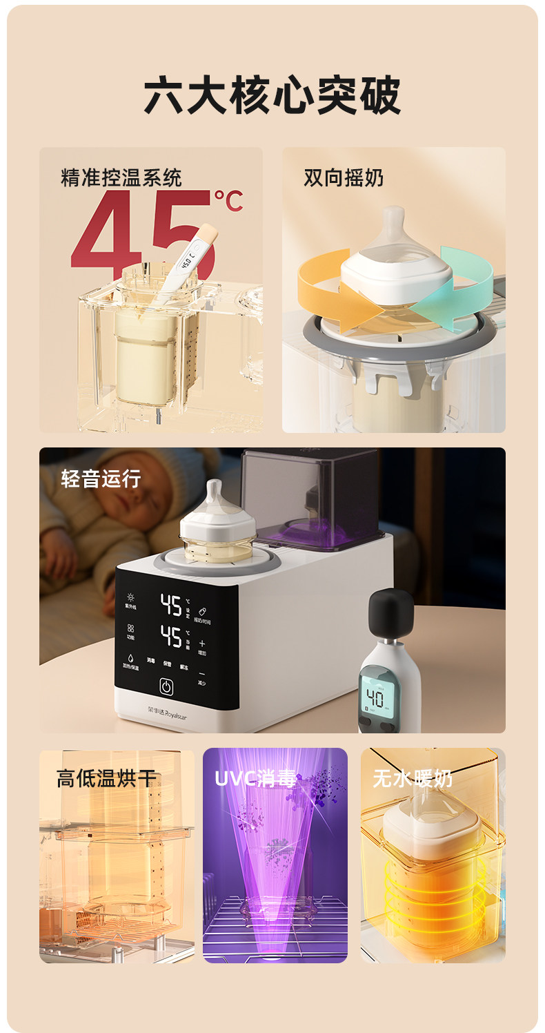 Royalstar Automatic Baby Bottle Shaker, Silent Milk Warmer, Sterilizer, Two-In-One Machine, Baby Formula Mixer