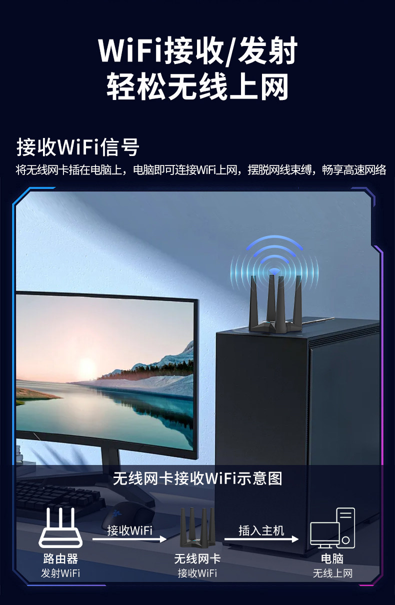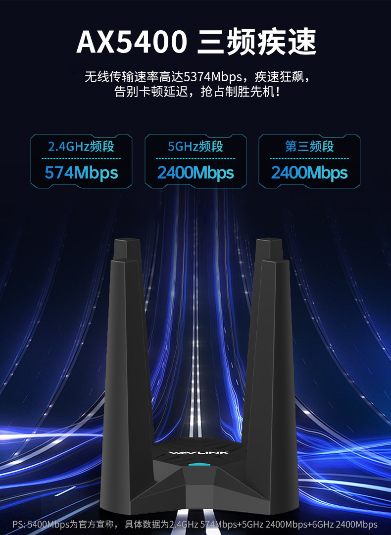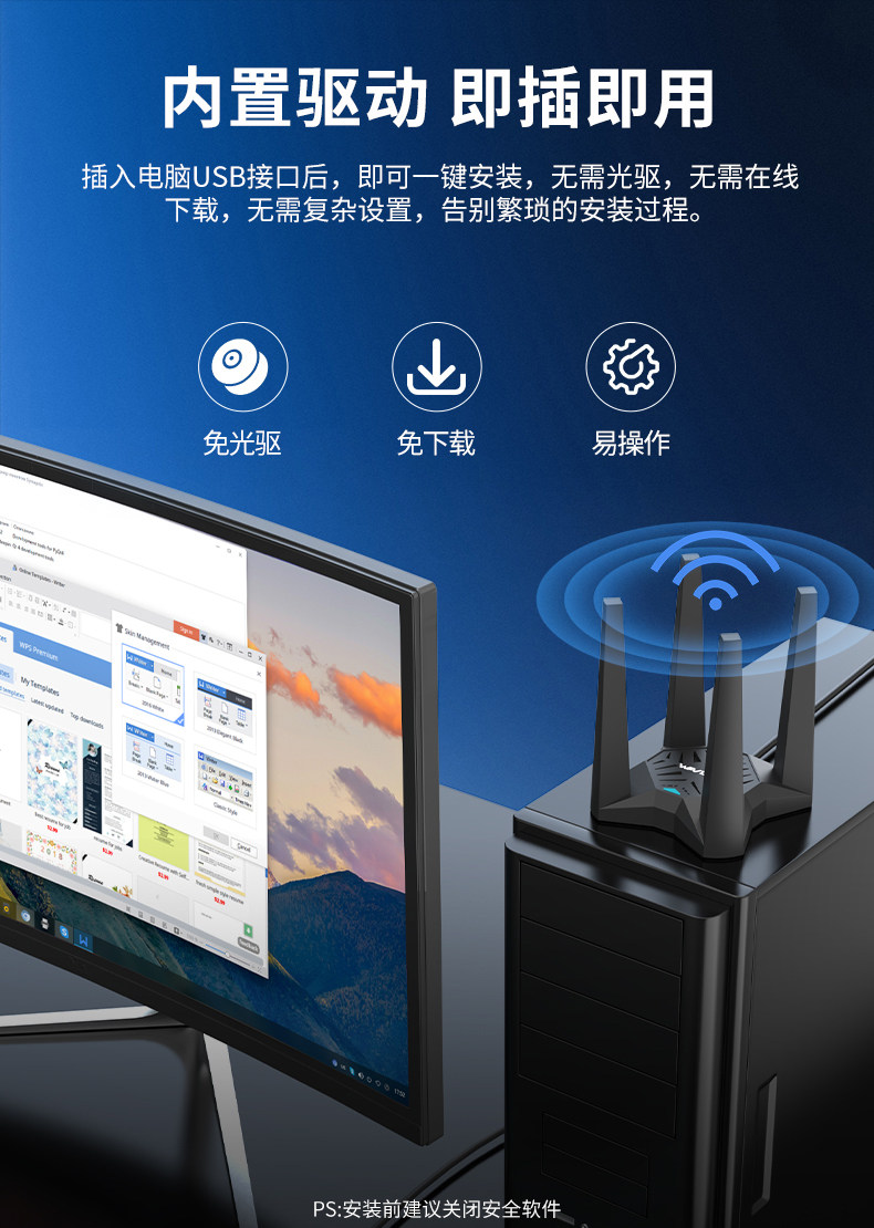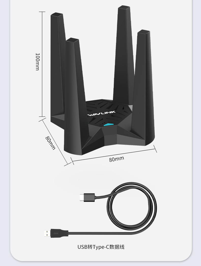 [Ax5400 Driver-Free] Wireless Network Card Ruin E-Sports Game Desktop Computer Wifi Receiver Gigabit Tri-Band 5g Notebook Internet USB External Signal Receiving and Transmitting Win10/11