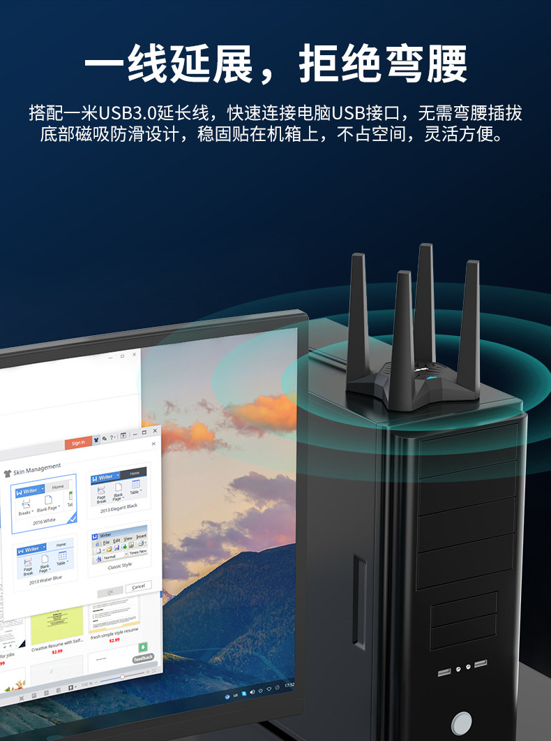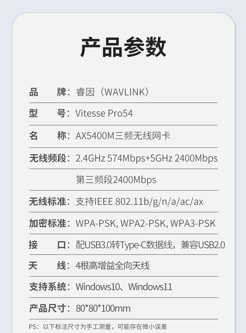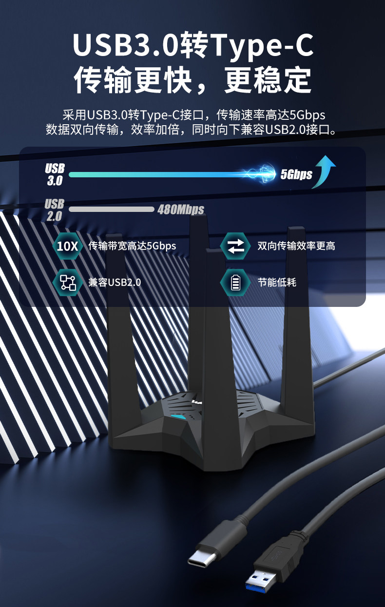 [Ax5400 Driver-Free] Wireless Network Card Ruin E-Sports Game Desktop Computer Wifi Receiver Gigabit Tri-Band 5g Notebook Internet USB External Signal Receiving and Transmitting Win10/11