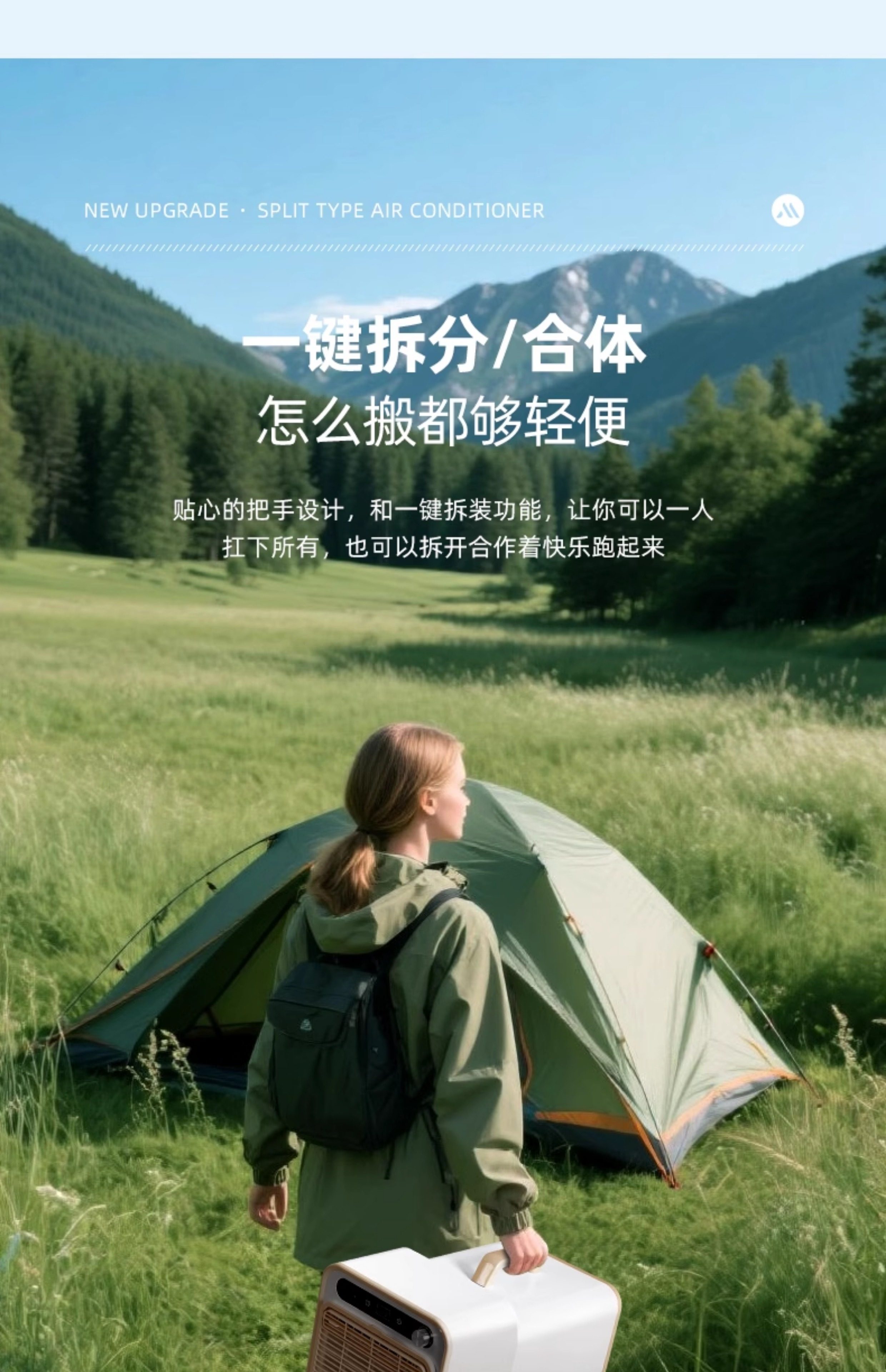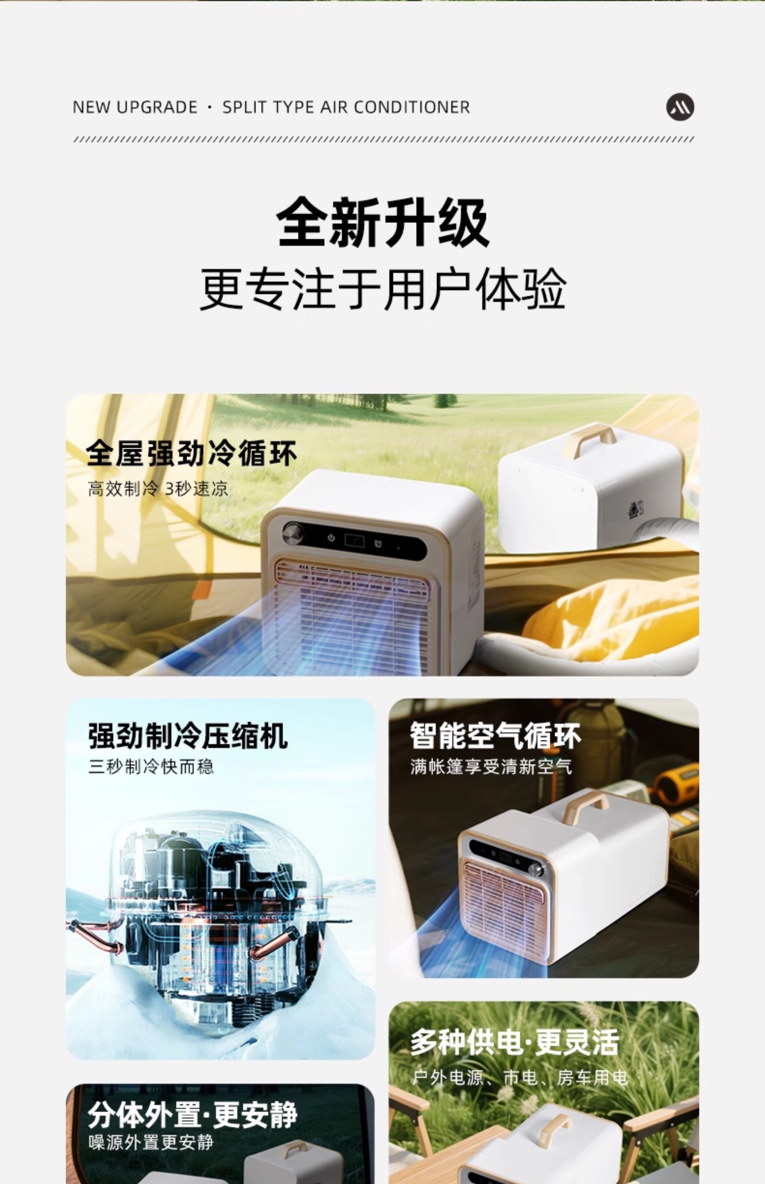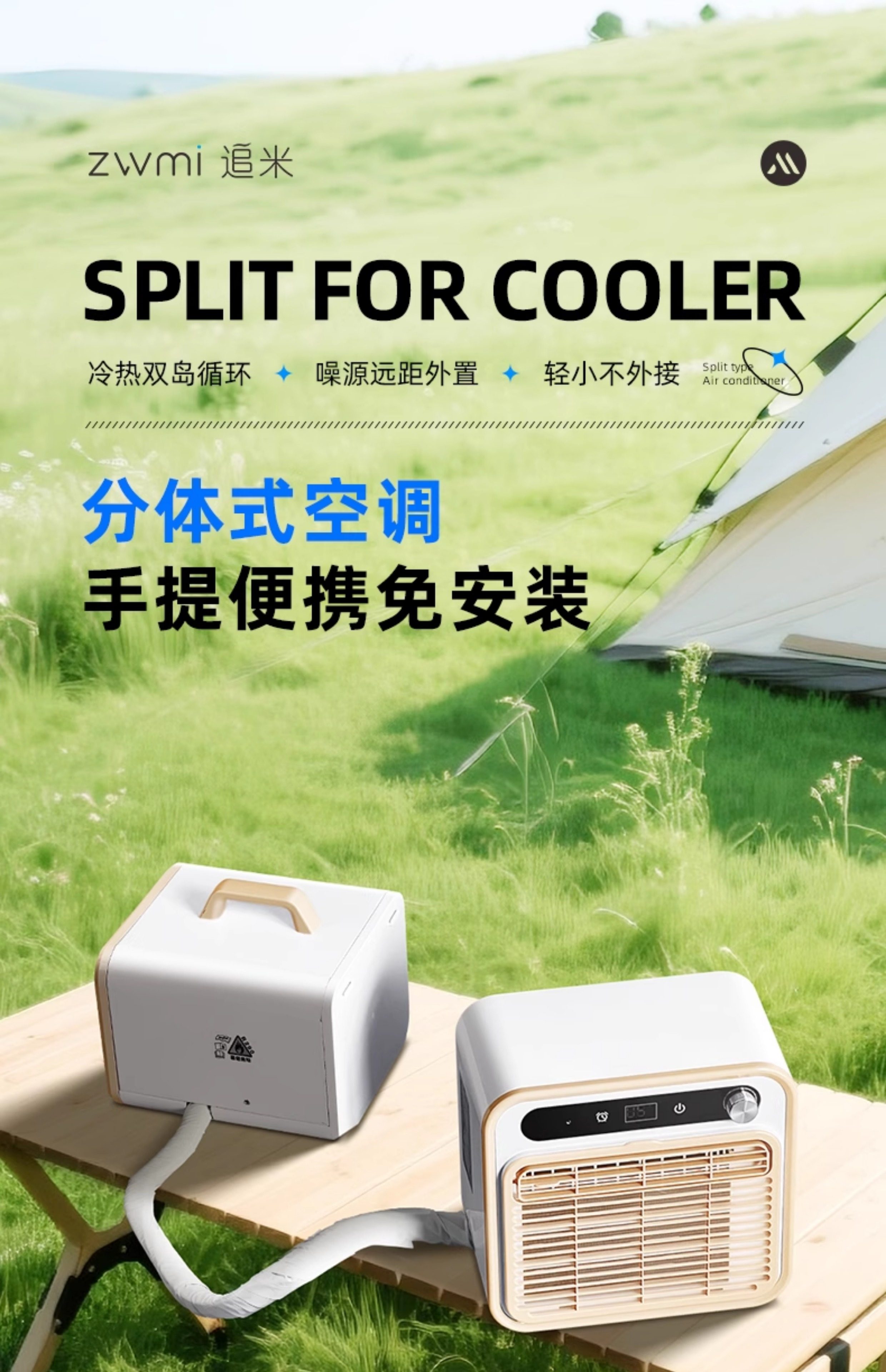 Chuimi Detachable Portable Mobile Air Conditioner with Compressor Cooling for Outdoor Camping Tents and Car Parking
