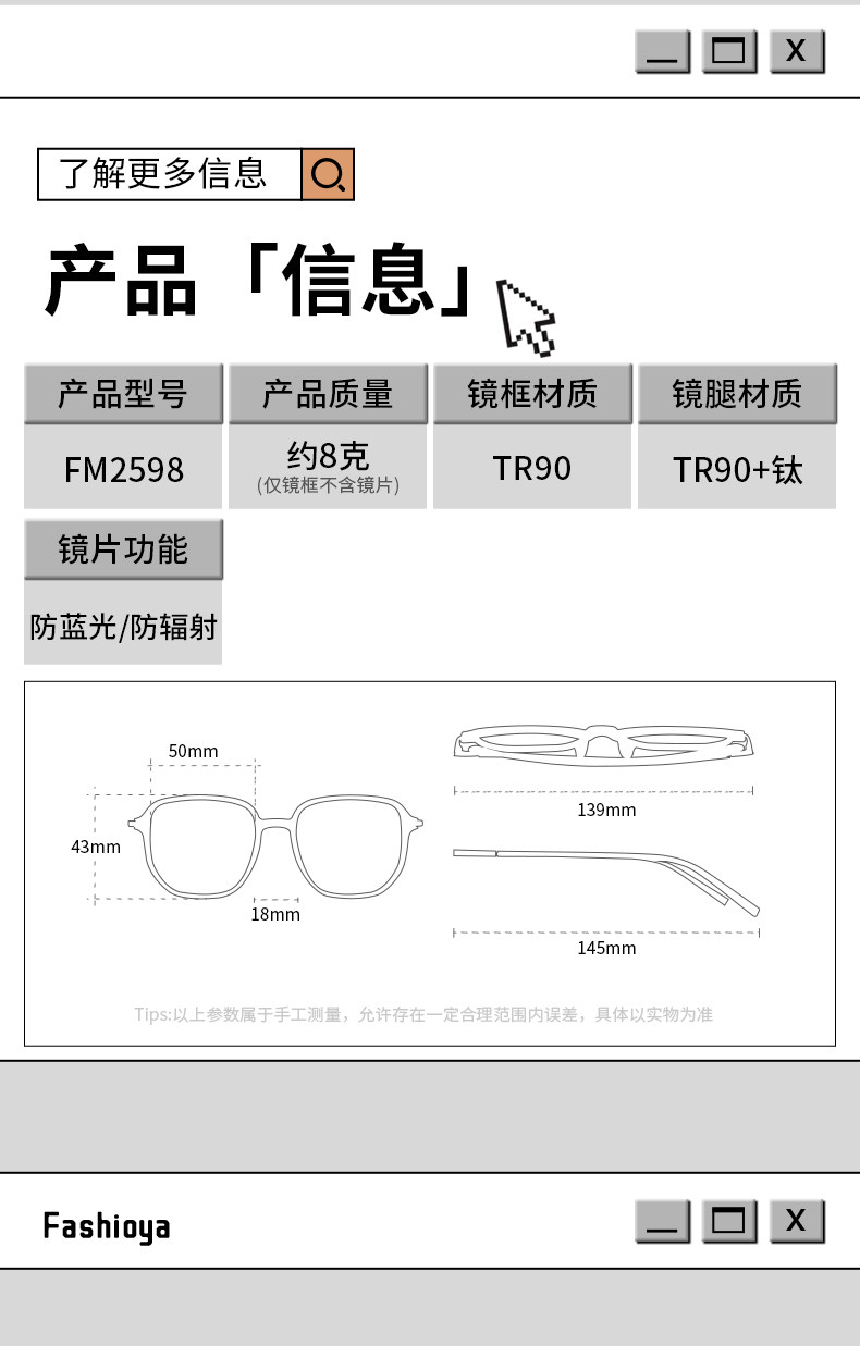 | Lens Refractive Index | Frame + 0 Degree Anti-Radiation Lenses,Eyeglass Frames + [Thin & Lightweight] 1.56 Blue Light Blocking & Anti-Radiation Lenses [Suitable for 0-300] [Please Specify Prescription],Eyeglass Frames + [Slightly Thinner] 1.61 Blue Light Blocking & Anti-Radiation Lenses [Suitable for 0-500] [Please Specify Prescription],Eyeglass Frames + [Ultra-Thin] 1.67 Blue Light Blocking & Anti-Radiation Lenses [Suitable for 0-800] [Please Specify Prescription],Eyeglass Frames + [Ultra-Thin] 1.74 Blue Light Blocking & Anti-Radiation Lenses [Suitable for 0-1200] [Note Prescription],Frame + [Thin] 1.56 Anti-Radiation Lenses [Suitable for 0-300] [Remark Degree],Frame + [Thinner] 1.61 Anti-Radiation Lenses [Suitable for 0-500] [Remarks],Frame + [Ultra-Thin] 1.67 Anti-Radiation Lens [Suitable for 0-800] [Remarks],Frame + [Thinnest] 1.74 Radiation-Proof Lens [Suitable for 0-1200] [Remark Degree],Frame + Essilor Wanxin 1.56 Multi-Screen Anti-Blue Light Lenses [Suitable for 0-300] [Remark Prescription],Eyeglass Frames + Essilor's Varifocal 1.60 Blue Light Blocking Lenses [Suitable for 0-500] [Please Specify Prescription],Eyeglass Frames + Essilor's Varifocal 1.67 Blue Light Blocking Lenses [Suitable for 0-800] [Please Specify Prescription],Frame + Essilor Wanxin 1.74 Multi-Screen Anti-Blue Light Lenses [Suitable for 0-1200] [Remark Degree],Frame + Essilor Wanxin 1.56 Daily Anti-Radiation Lenses [Suitable for 0-300] [Remark Degree],Frame + Essilor Wanxin 1.60 Daily Anti-Radiation Lenses [Suitable for 0-500] [Remark Degree],Frame + Essilor Wanxin 1.67 Daily Anti-Radiation Lenses [Suitable for 0-800] [Remark Degree],Frame + Essilor Wanxin 1.74 Daily Anti-Radiation Lenses [Suitable for 0-1200] [Remark Degree] |