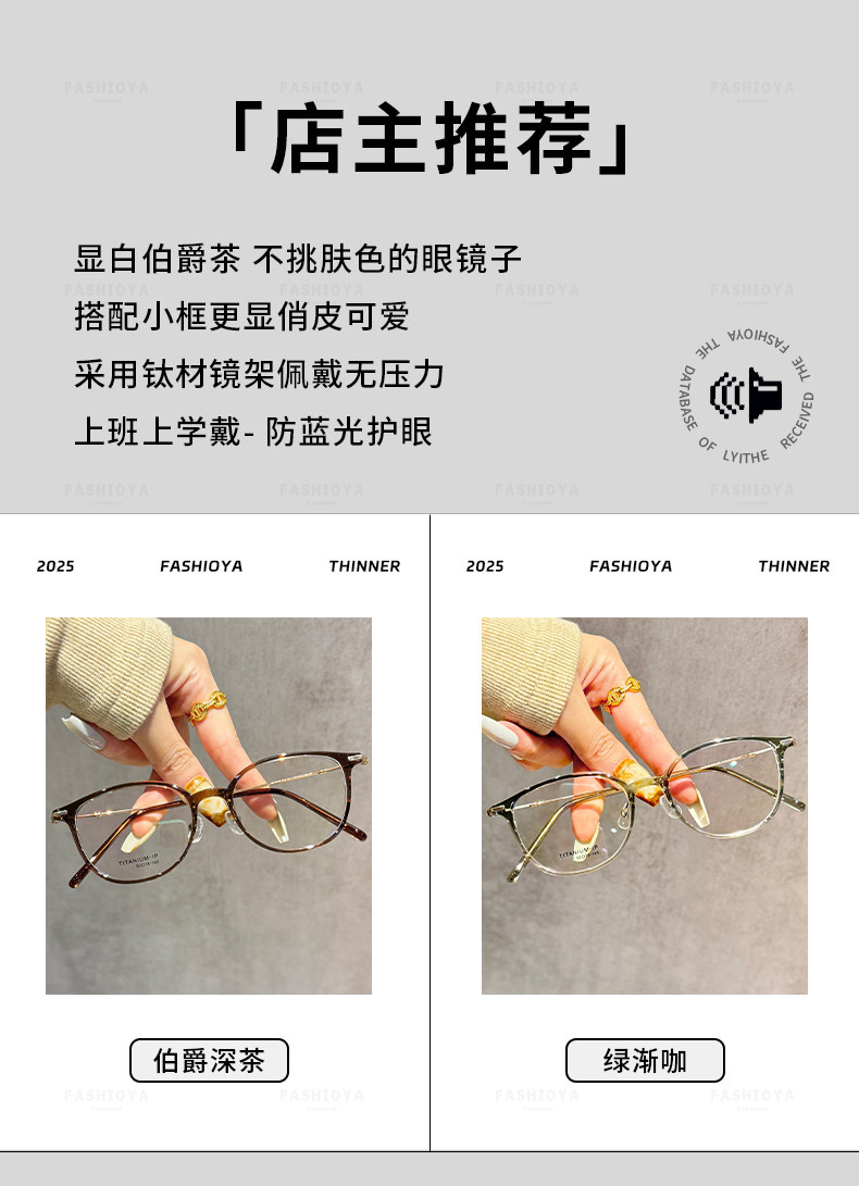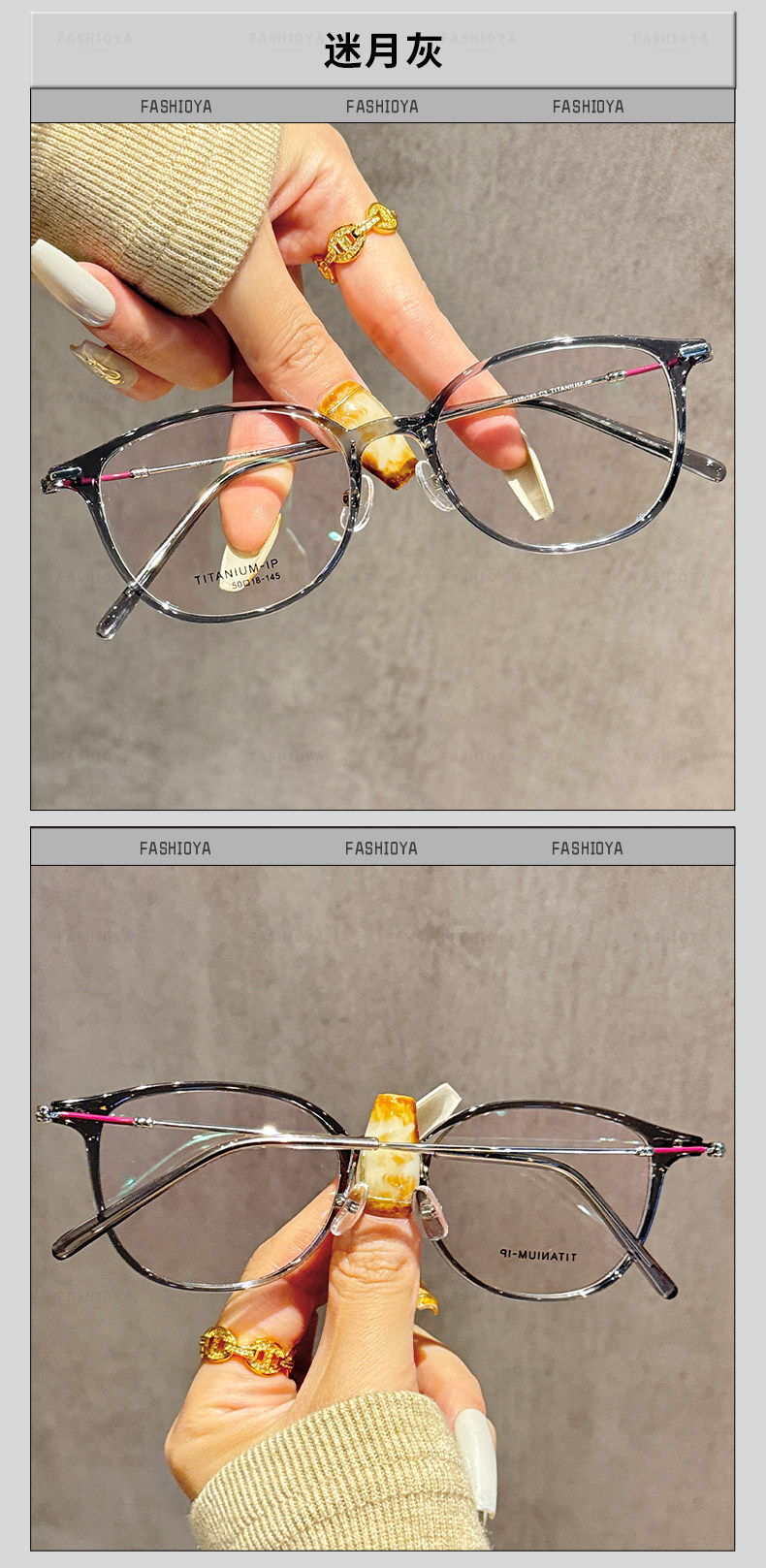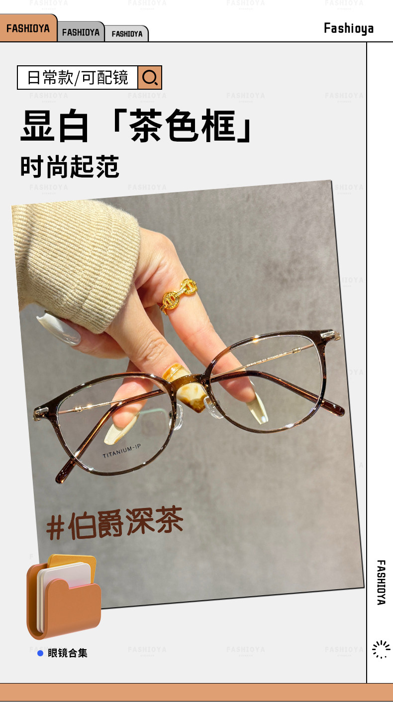Ultra-Light Titanium Frame Brown Square-Round Glasses for Women with Myopia, Suitable for Prescription Lenses, Korean-Style Eyeglass Frames for Square and Round Faces