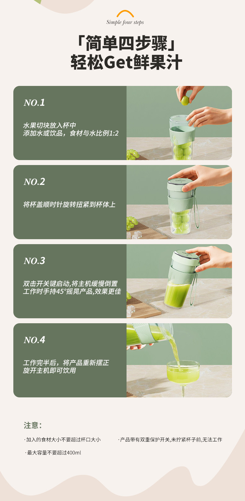 | Color Classification | Wireless Portable Juicer Cup-400Ml Ice Crushable + Free Charging Cable,Multifunctional Juicer[Juicing, Grinding and Crushing Ice]Wired |
