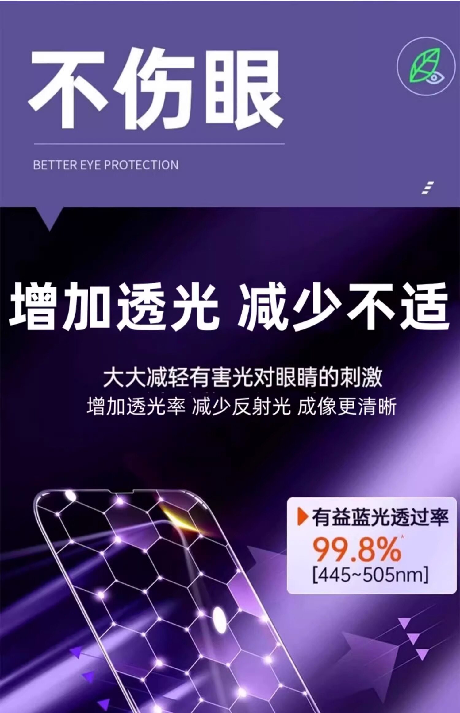 | Film Characteristics | Ar Anti-Reflection,Anti-Fingerprint,Anti-Blue Light |