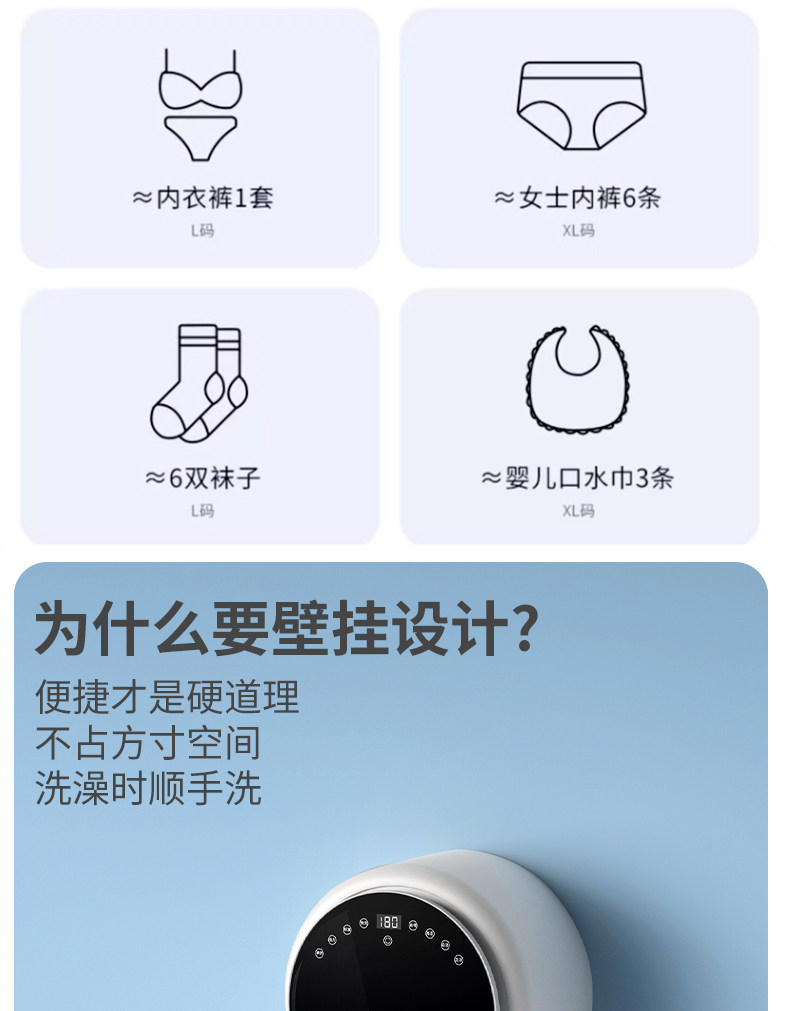Wall-Mounted Mini Washing Machine, Fully Automatic, Small, Dedicated for Washing and Drying Underwear, Socks, and Other Items, for Home Use