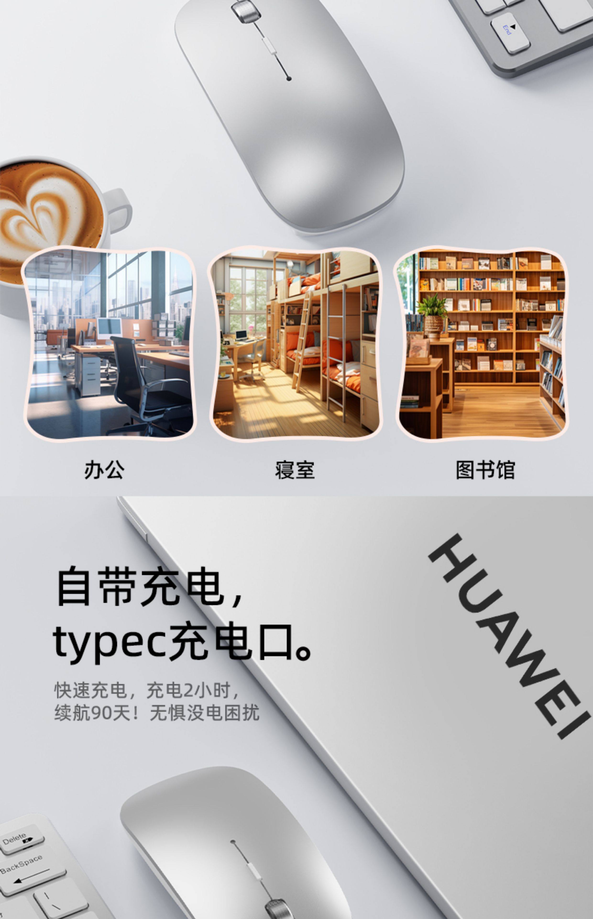 Suitable for Huawei Matebook X Pro Laptop Wireless Bluetooth Mouse with Type-C Interface and Silent Operation
